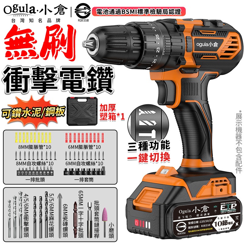 【Ogula小倉】無刷電鑽 鋰電衝擊鑽 電動起子 鋰電鑽 大扭力電鑽 水泥衝擊電鑽 可鑽水泥墻/混凝土【台灣品牌】無刷衝擊【裸機】+配件豪禮|無刷衝擊【3.0A】一電+配件豪禮|無刷衝擊【3.0A】兩電+配件豪禮|無刷衝擊【6.0A】一電+配件豪禮|無刷衝擊【6.0A】兩電+配件豪禮|牧田數顯【18650系列】6.0A|牧田數顯【18650系列】9.0AToolsOgula小倉【官方旗艦店】