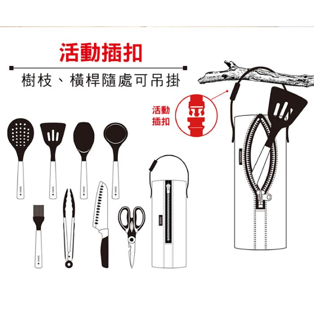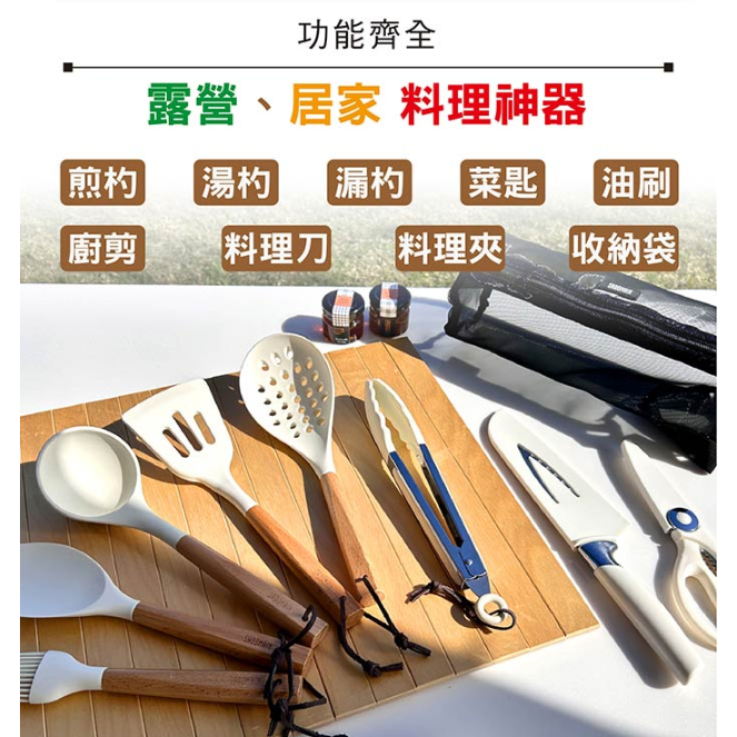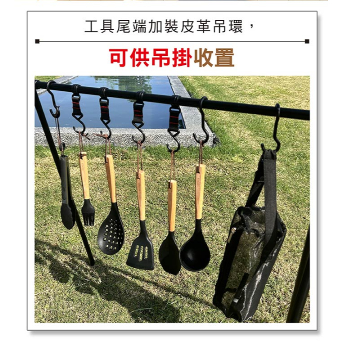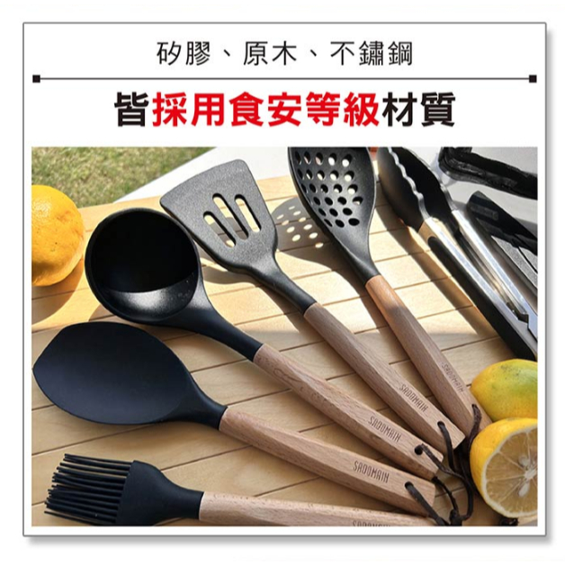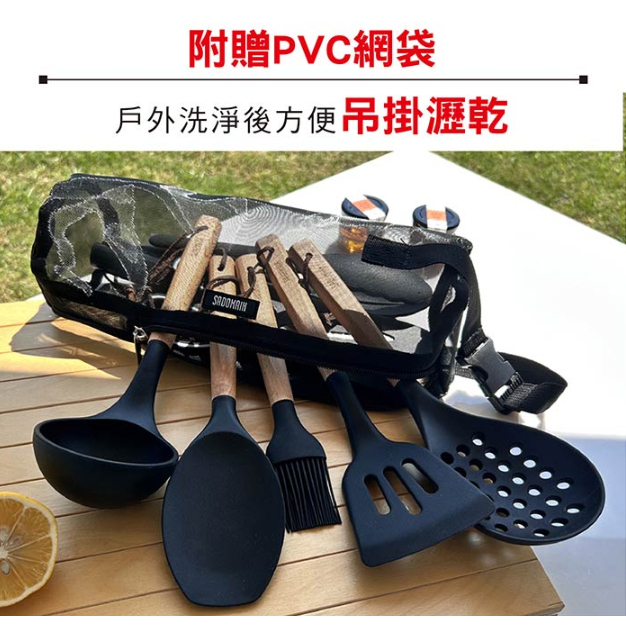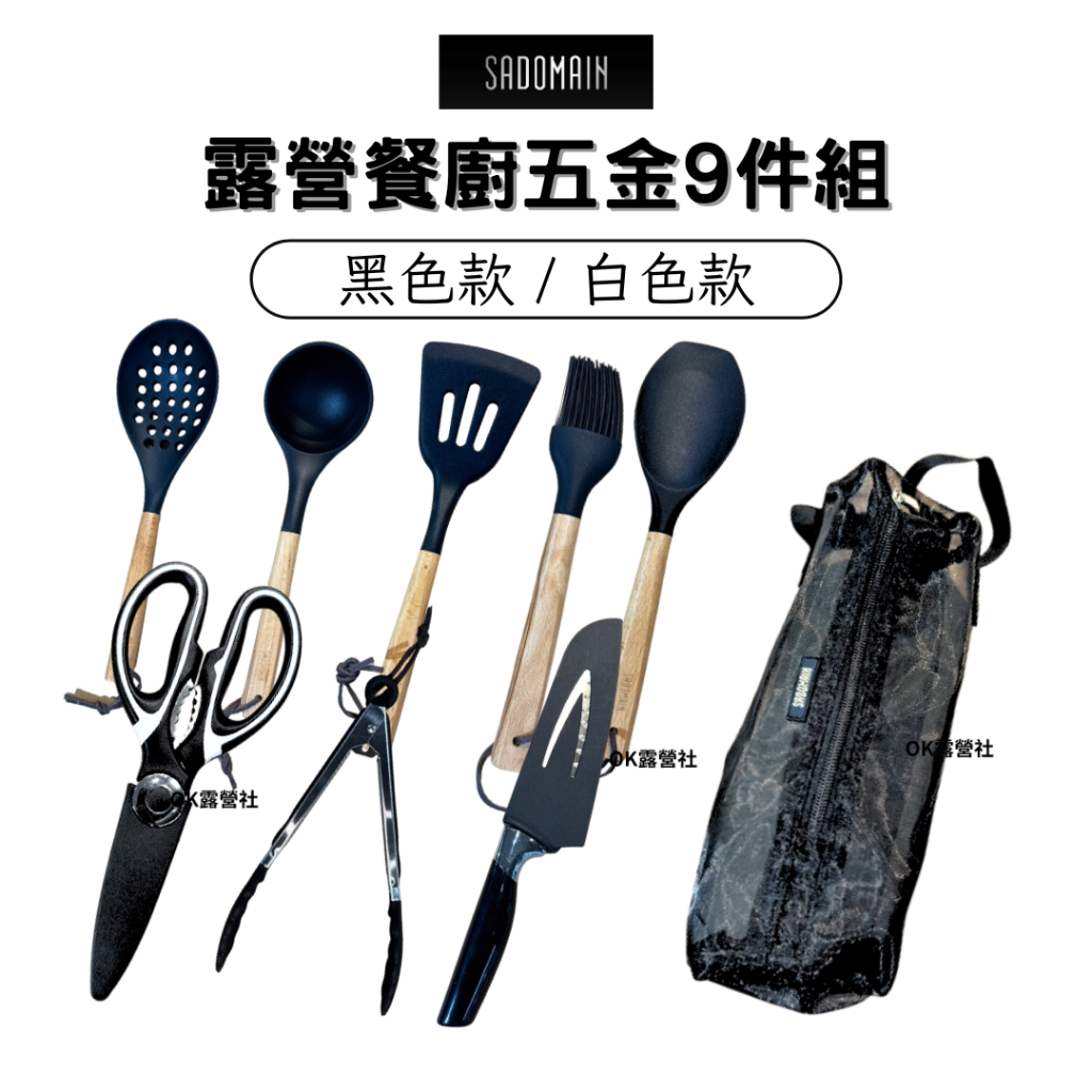 仙德曼 SADOMAIN 露營餐廚五金9件組 櫸木餐廚組 9件套 附收納網袋【OK露營社】黑色Spatulas & Cooking TweezersOK露營社