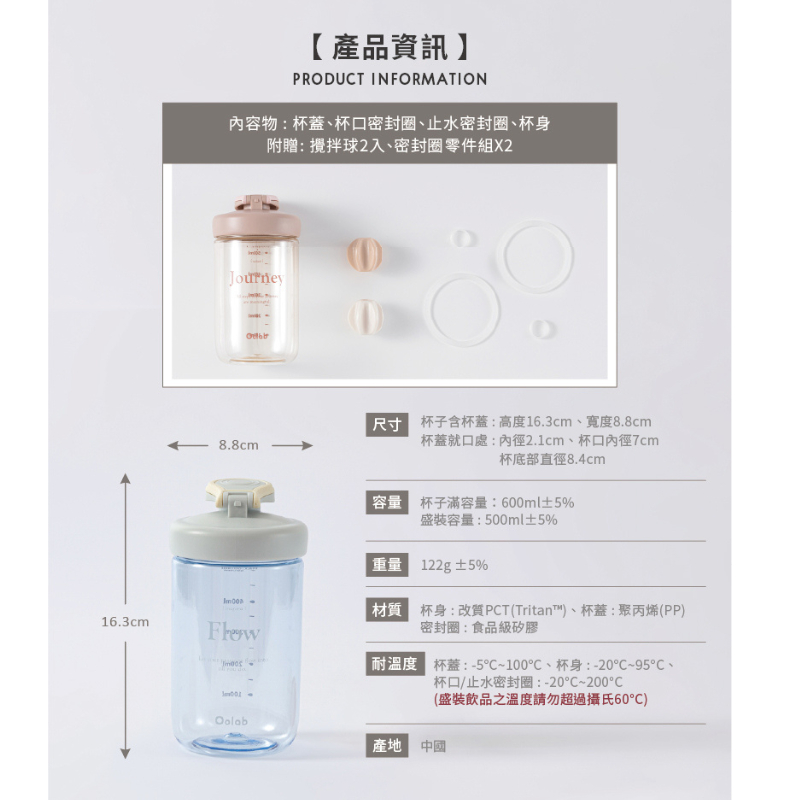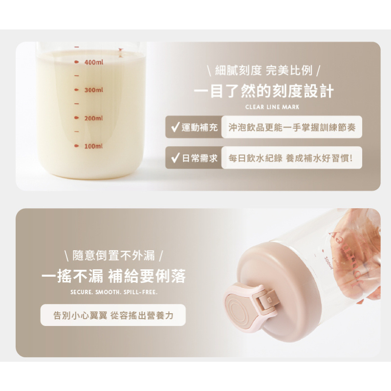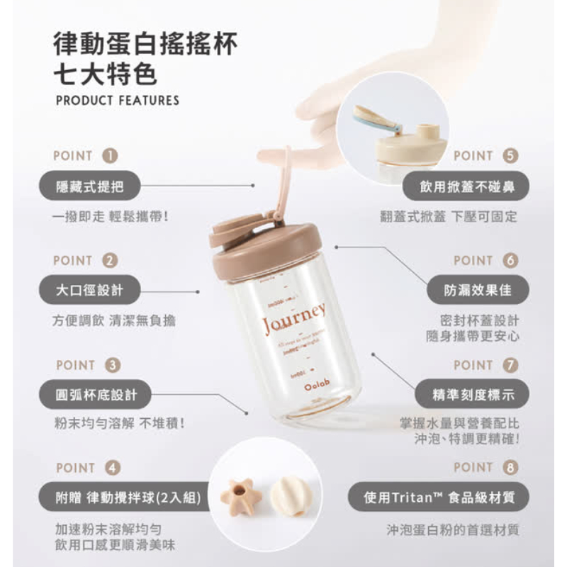 【Oolab 良杯製所】律動蛋白搖搖杯 500ML 健身搖搖杯 蛋白杯 攪拌杯 乳清蛋白 運動健身 水壺柔霧粉|奶油白|朦朧藍|温暖棕Water Bottles & AccessoriesOolab 良杯製所