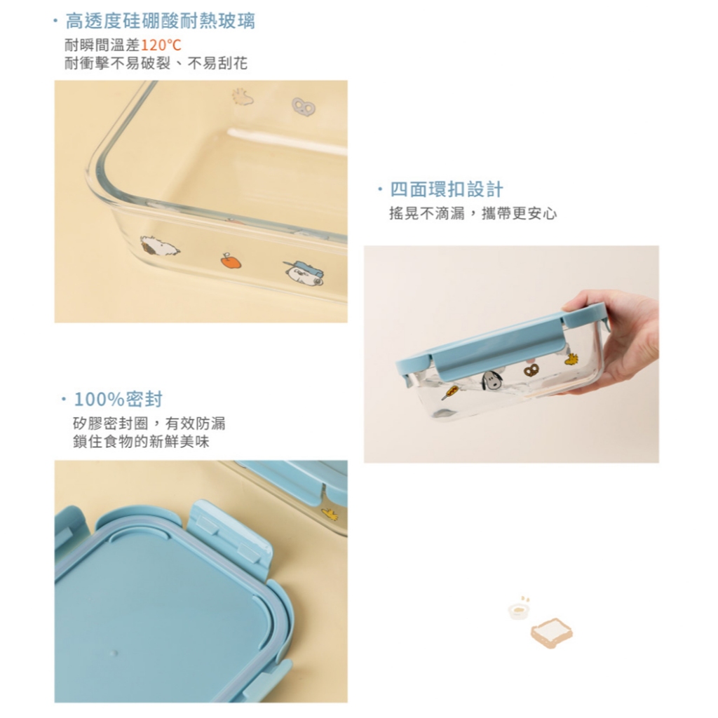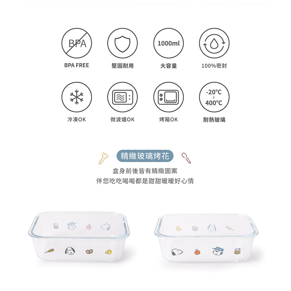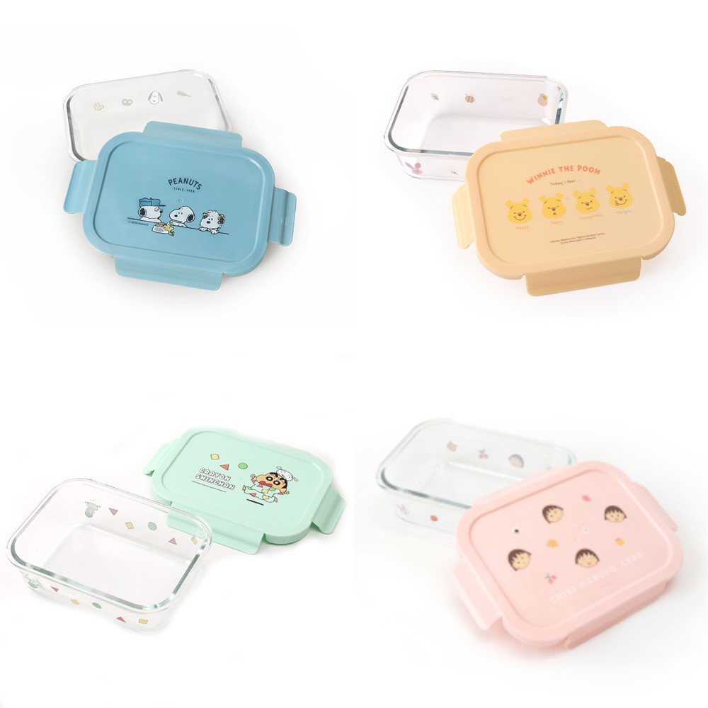 耐熱玻璃保鮮盒 蠟筆小新 史努比 小熊維尼 櫻桃小丸子 三眼怪 1000ml容量 長方形便當盒 保鮮盒 餐盒 便當盒小熊維尼|蠟筆小新|櫻桃小丸子|三眼怪|史努比Food StorageNorns