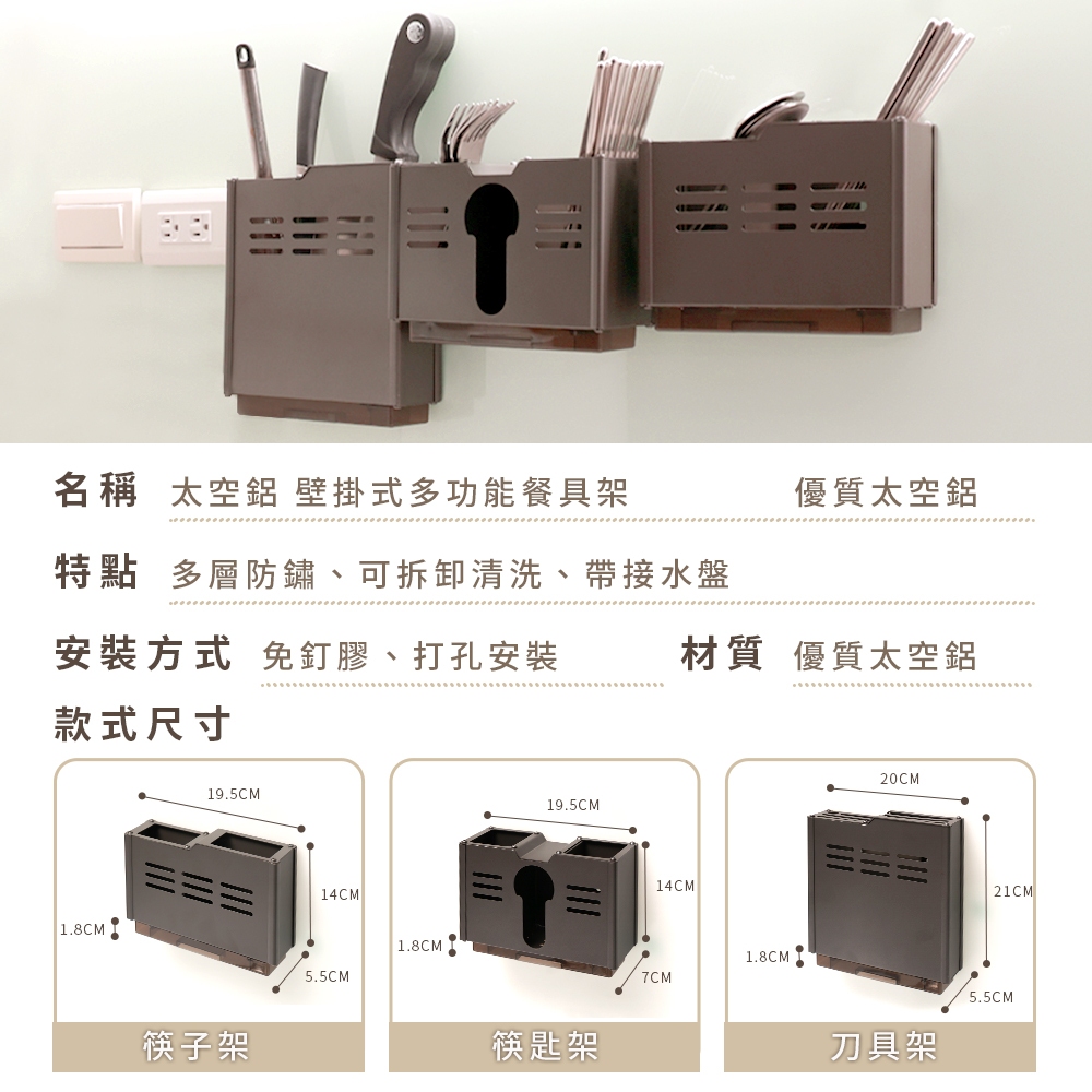 K18 太空鋁 壁掛式多功能餐具架 台灣現貨 廚房置物架 廚房收納掛架 筷架 刀架 壁掛式刀架 筷子筒 菜刀架筷子架|筷匙架|刀具架Kitchen RacksPhilo飛樂|arlink雅聯【官方旗艦店】