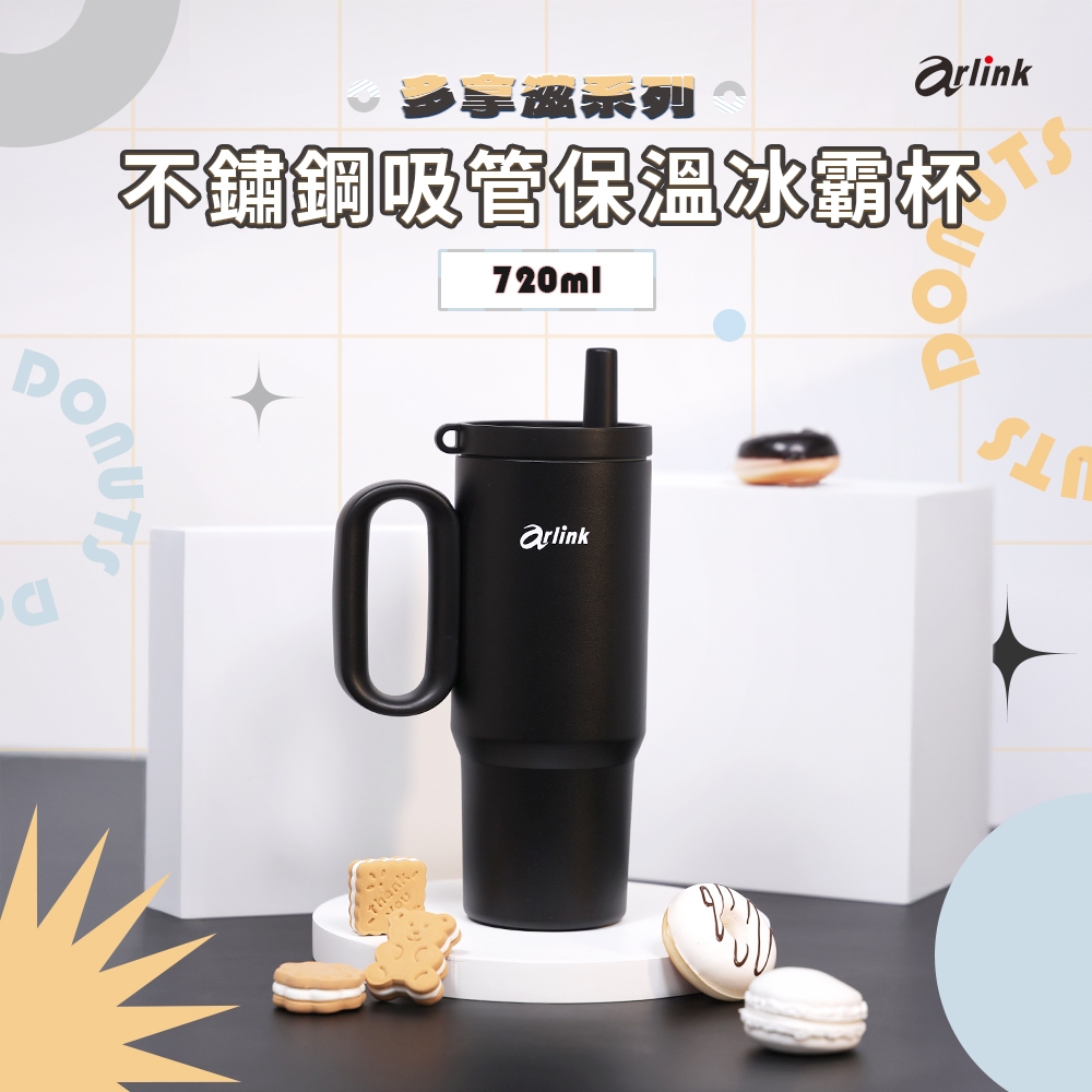 【Arlink雅聯】多拿滋系列 不鏽鋼吸管保溫冰霸杯720ml-黑夜降臨 水壺 吸管冰霸杯 保溫杯 長效保溫 台灣品牌