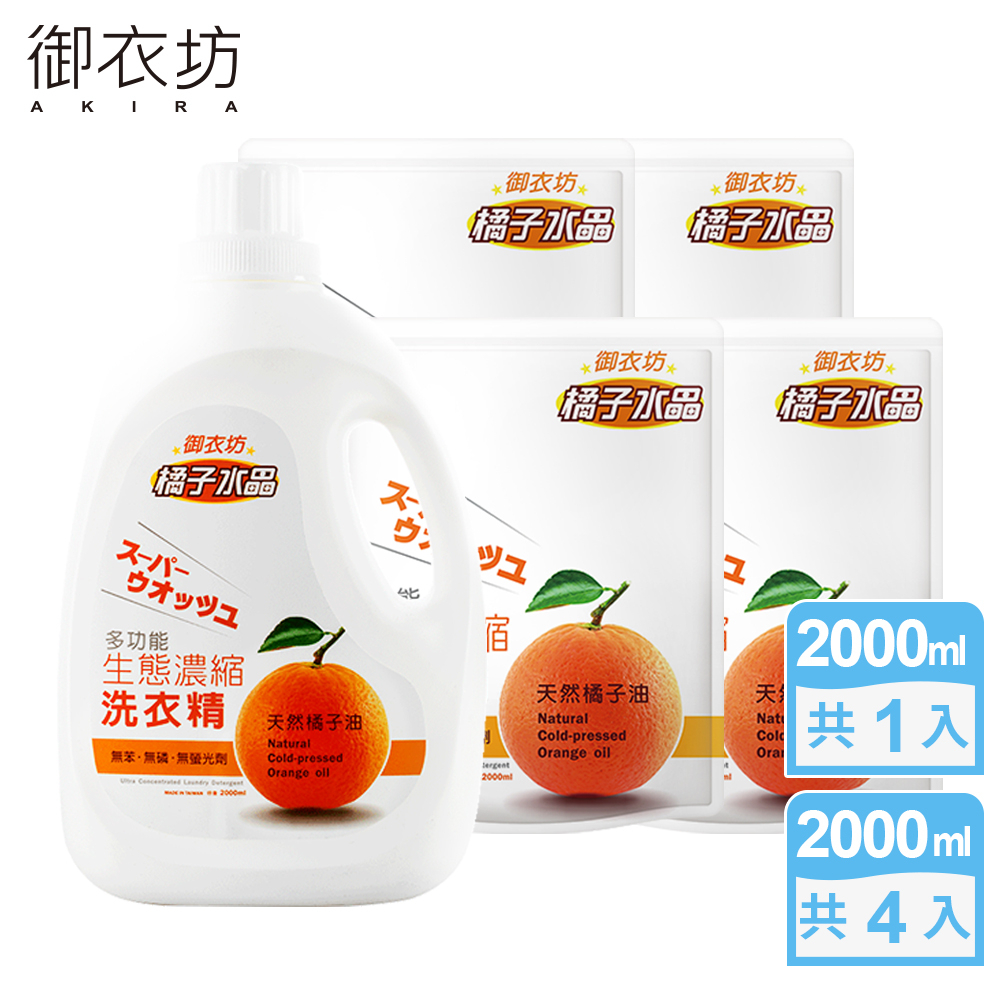 【Akira御衣坊】多功能生態濃縮橘油洗衣精2000mlx1罐+2000mlx4包組(天然橘子油)1+4 x1組|1+4 x2組Laundry CareProsi普洛斯官方直營店_普洛斯Prosi/御衣坊Akira