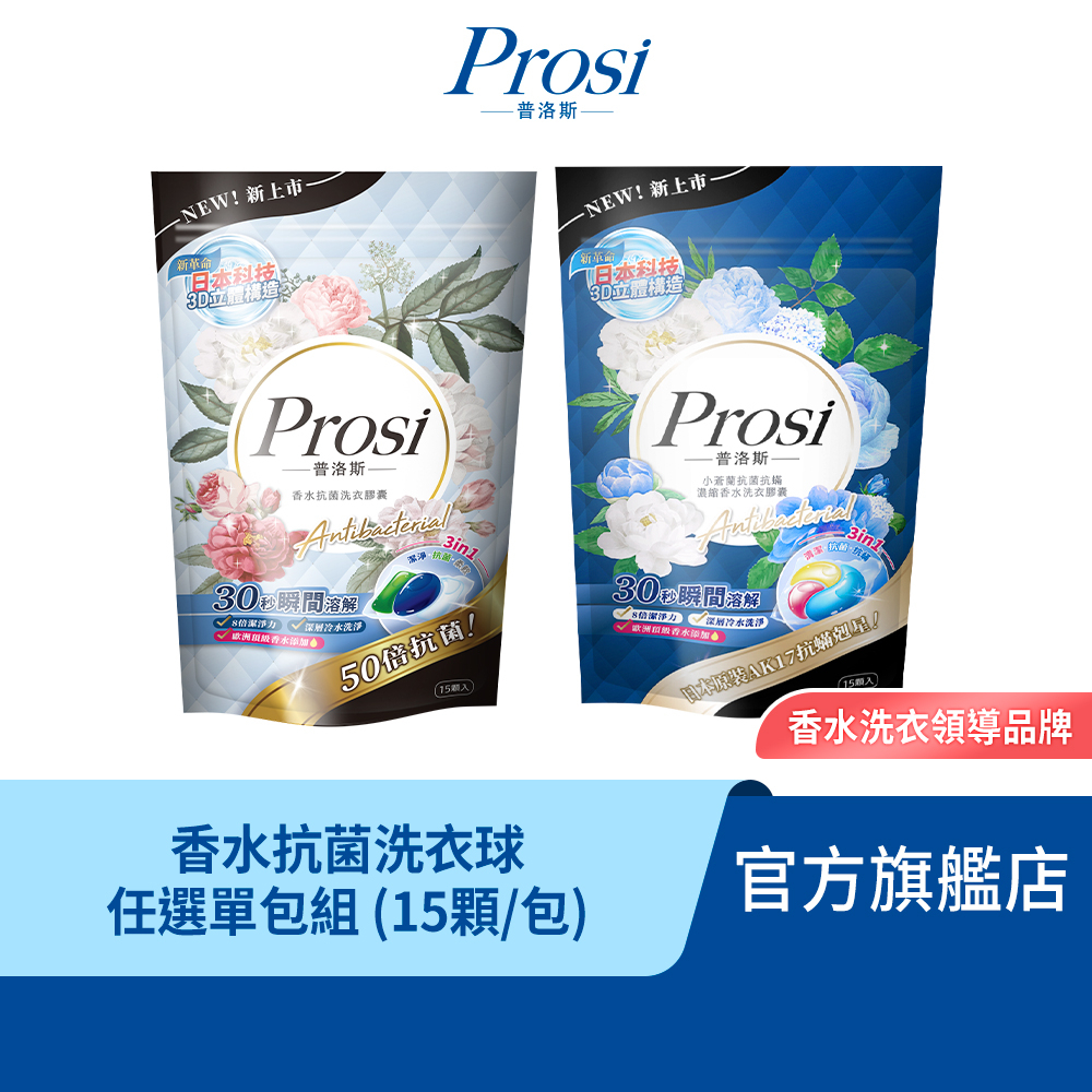 【Prosi普洛斯】抗菌濃縮香水洗衣膠球x1包(5倍濃縮x50倍抗菌)3合1抗菌 15顆x1包|小蒼蘭抗菌抗蟎 15顆x1包Laundry CareProsi普洛斯官方直營店_普洛斯Prosi/御衣坊Akira