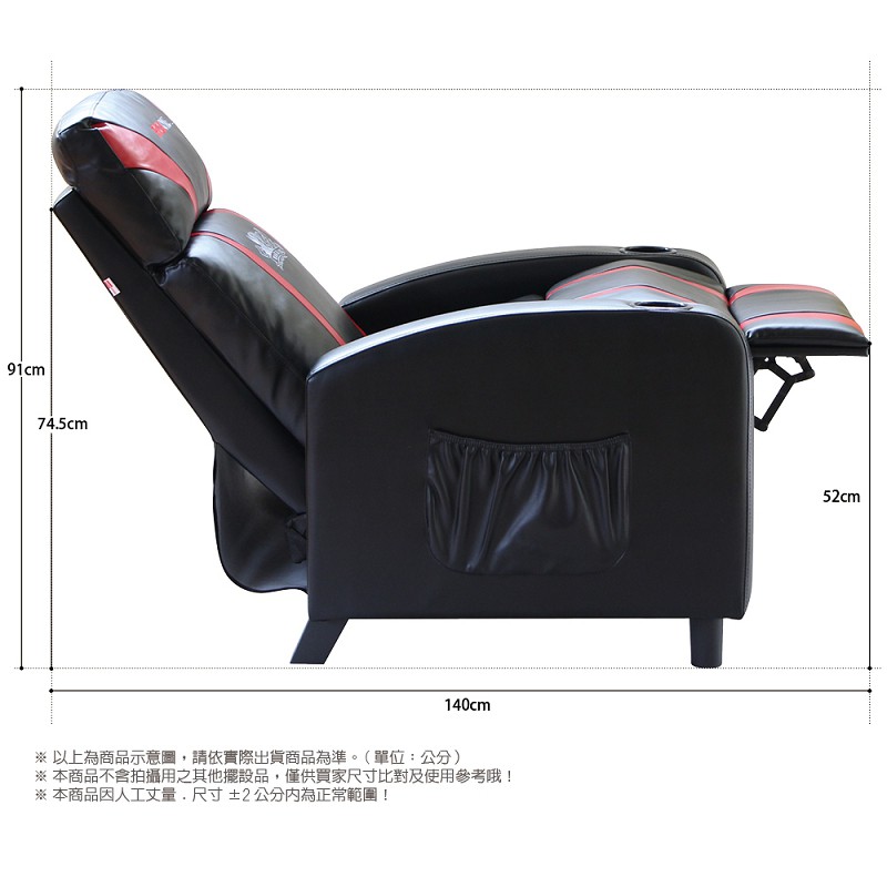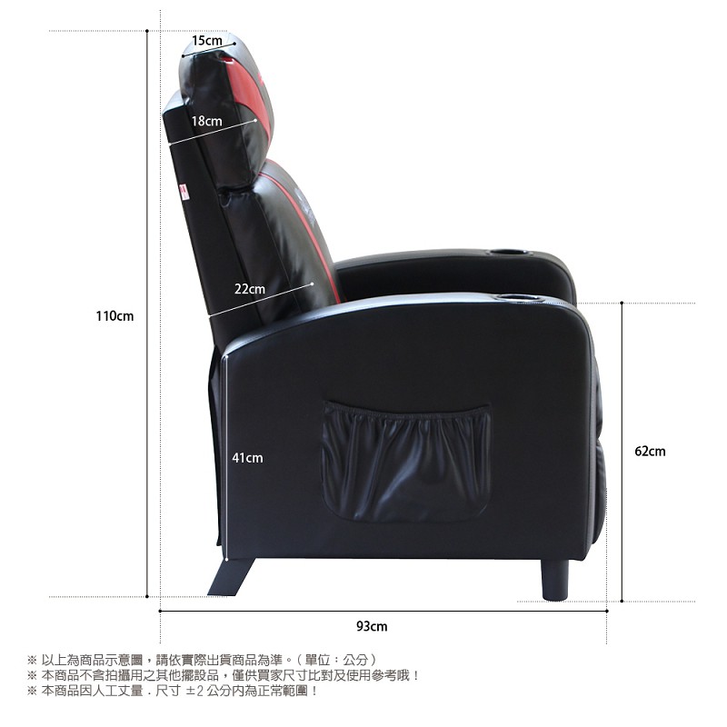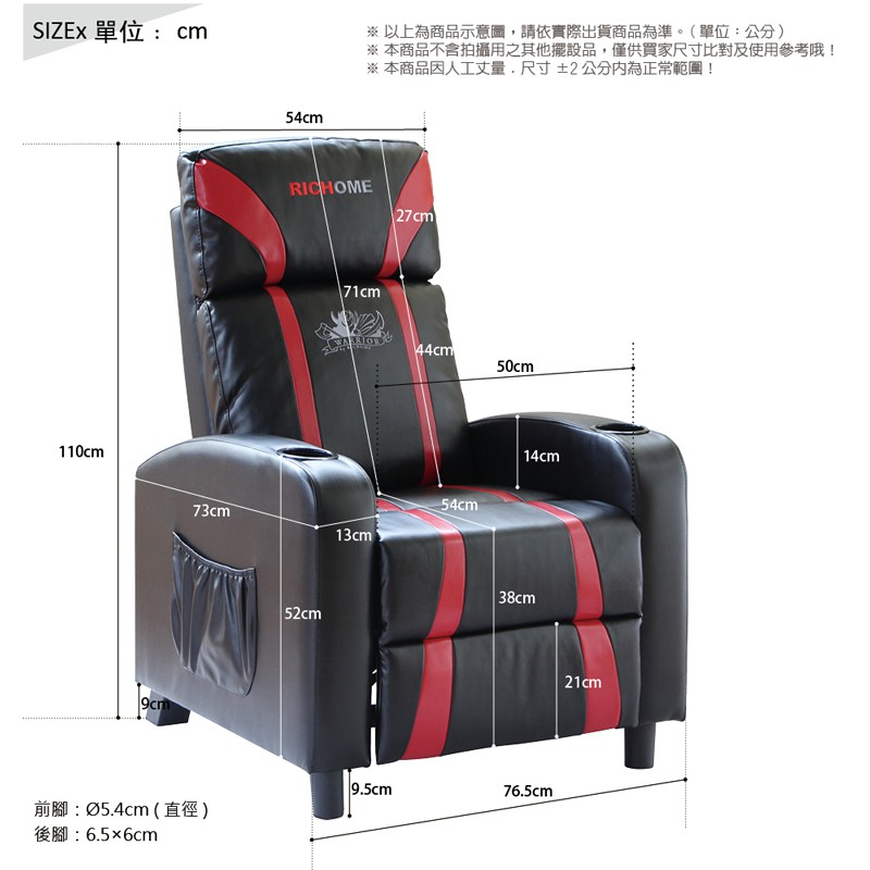 RICHOME 電競沙發附雙杯架 沙發 功能沙發 單人沙發 電競沙發 SF004黑色SofasRICHOME 生活家居