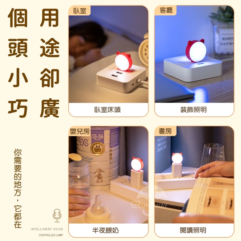 語音智能燈 聲控 三色光 USB小夜燈 小檯燈 宿舍 床頭燈 智慧AI 懶人燈 隨身便攜 緊急照明 七彩燈 語音控制貓型小夜燈|白色語音燈Runway 居家生活 戶外嚴選 隱形內衣 胸貼 胸墊 泳鏡 戲水周邊