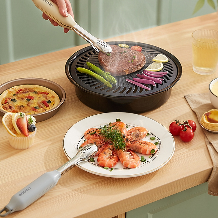 ecoco 意可可 烤盤食物夾 燒烤夾 烤肉夾 不鏽鋼夾 防燙夾 火鍋夾 304不鏽鋼夾 牛排夾 分食夾 分菜夾 料理夾北歐灰|豆青色|莫蘭迪黃Spatulas & Cooking TweezersRS睿森嚴選|秋樂富油品