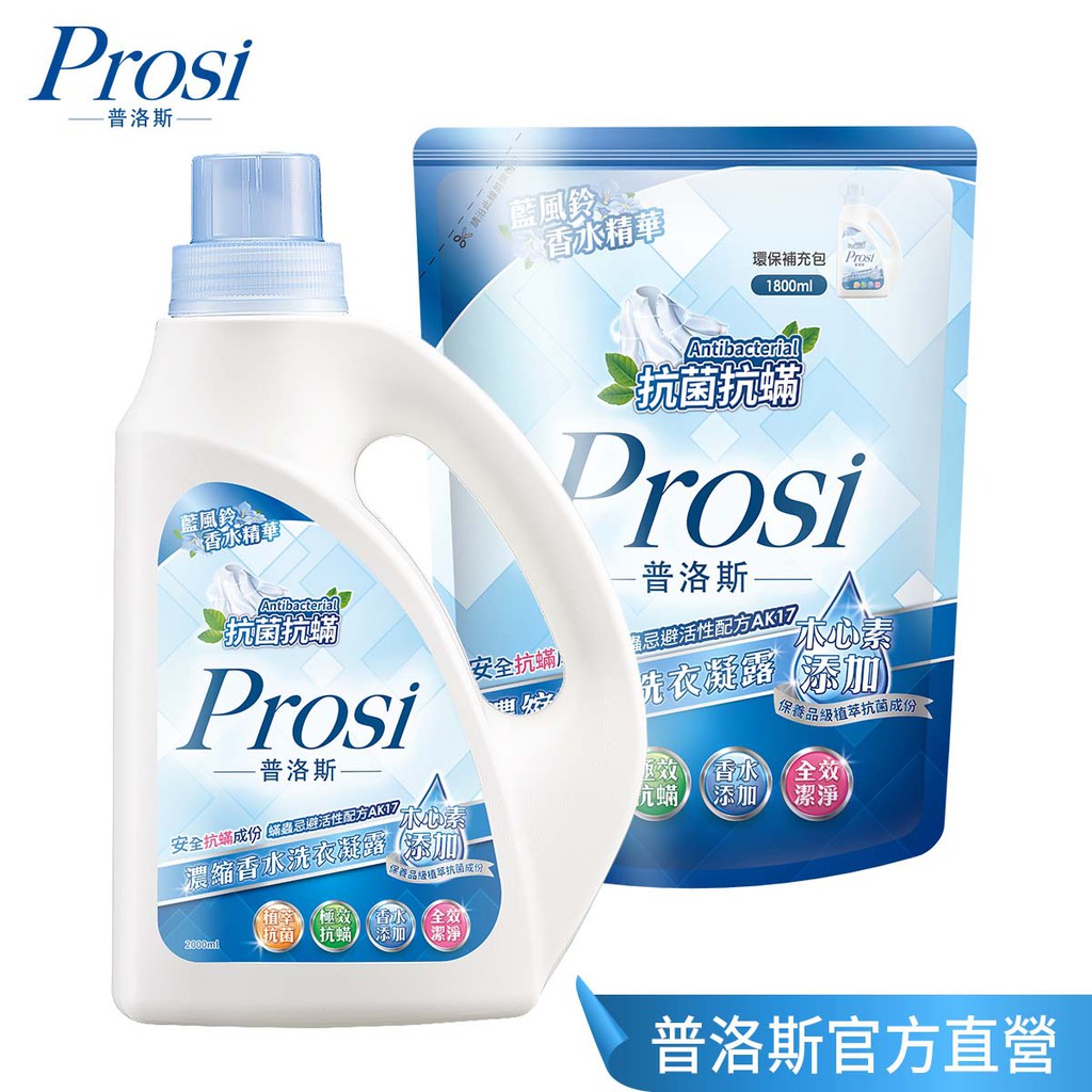 【Prosi普洛斯】抗菌抗蟎濃縮香水洗衣凝露 藍風鈴 組 (香水 香水洗衣精 抗蟎 防蹣 塵蹣)2000mlx1瓶+1800mlx2包|2000mlx1瓶+1800mlx4包|2000mlx2瓶+1800mlx4包Laundry CareProsi普洛斯官方直營店_普洛斯Prosi/御衣坊Akira