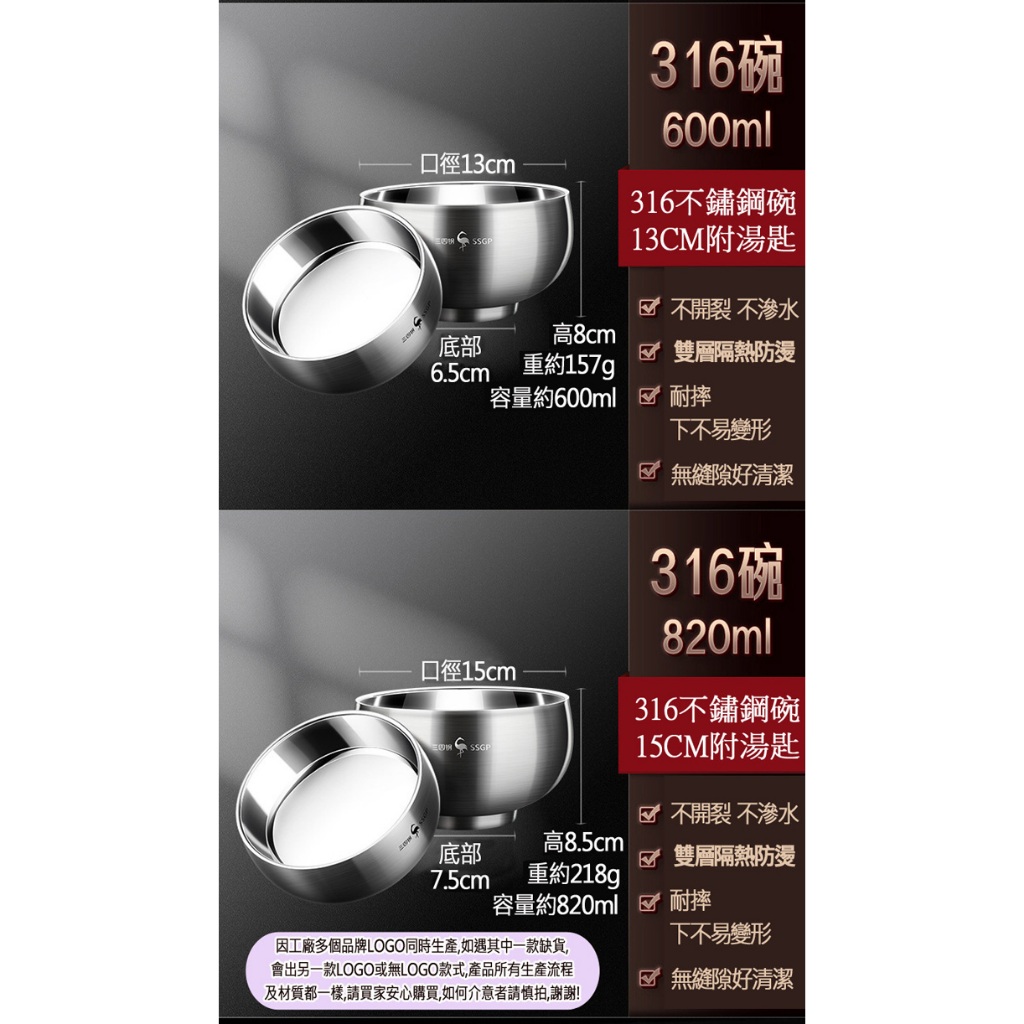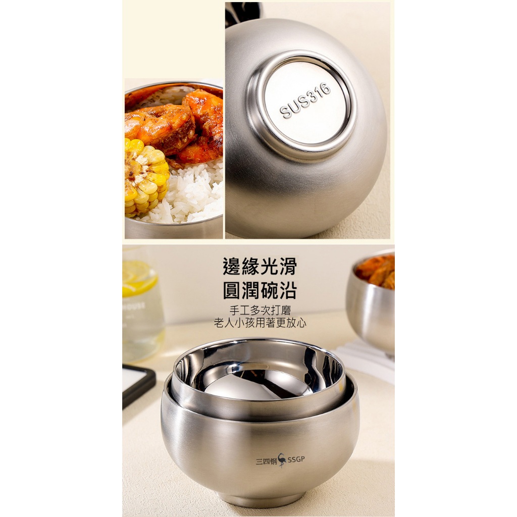 PUSH!餐具用品 316不銹鋼碗 雙層隔熱防燙飯碗兒童碗耐摔碗 湯碗食品級碗 E207E207(12CM+湯匙E191小號)|E207(13CM+湯匙E191中號)|E207(15CM+湯匙E191大號)BowlsPUSH居家生活用品