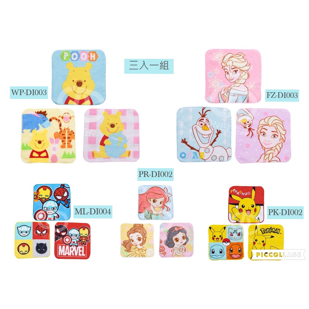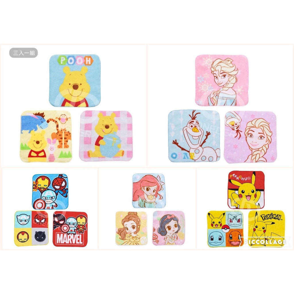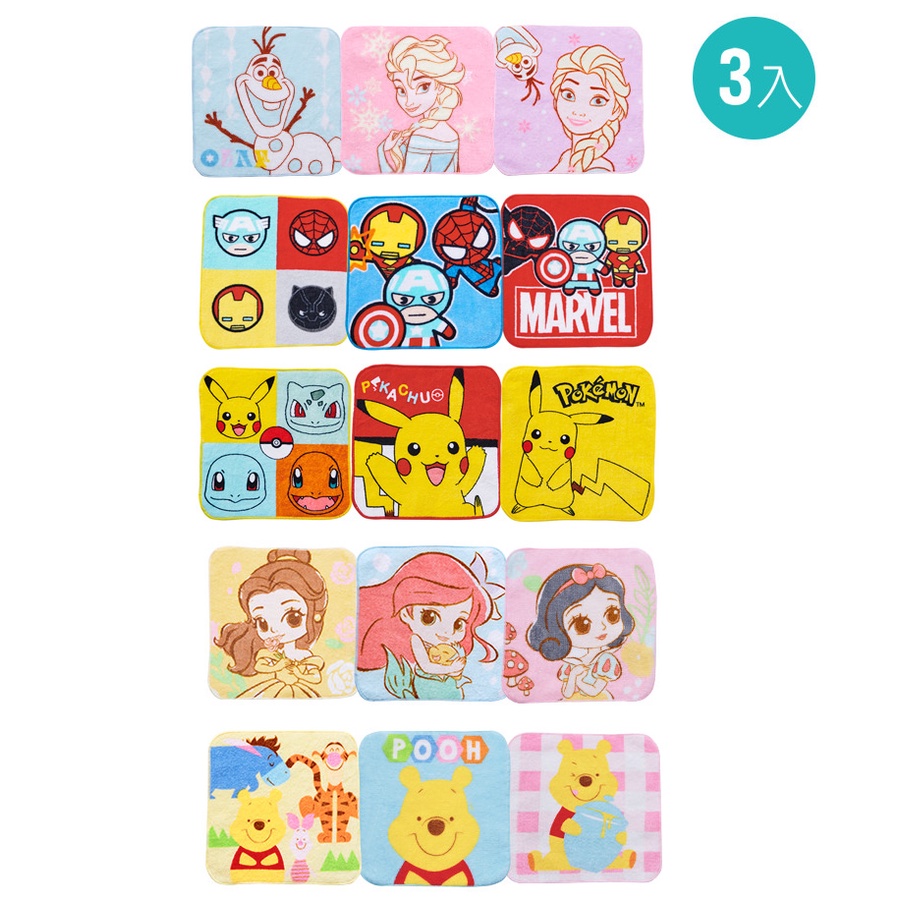 Disney 迪士尼公主 蜘蛛人小方巾(3入) 小熊維尼 冰雪奇寶可夢 手帕 小毛巾 卡通系列小方巾 【旺達棉品】冰雪奇緣|小熊維尼|迪士尼公主|蜘蛛人|冰雪奇緣新款|寶可夢Towels & Bathrobesoneder旺達棉品品牌旗艦店