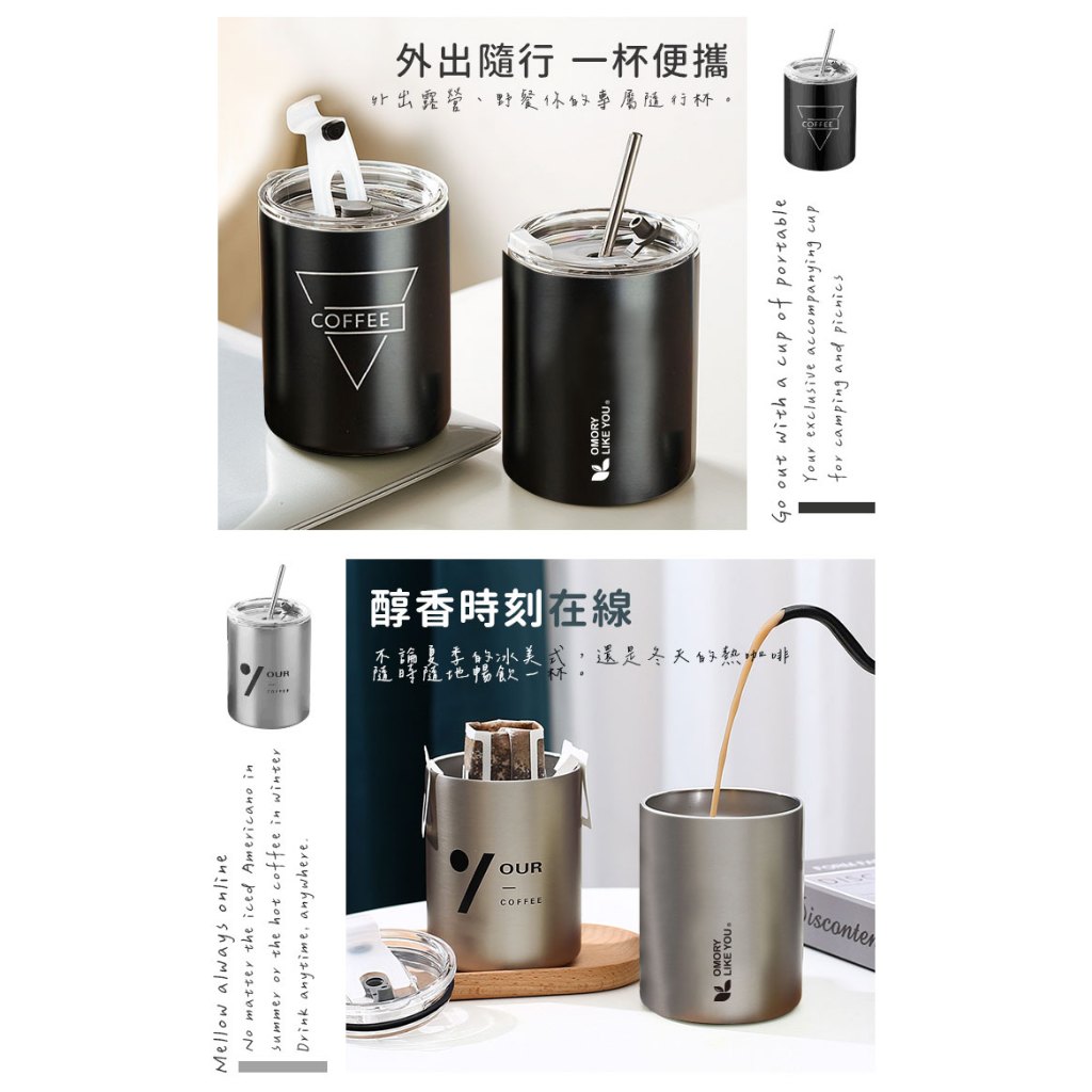 【OMORY】304晨光吸管雙口杯 飲料杯 沖泡 咖啡杯 350ML 可加購咖啡濾杯極光銀+(加購咖啡濾杯/一組)|星燦黑+(加購咖啡濾杯/一組)|極光銀|星燦黑Water Bottles & AccessoriesOMORY 樂活美學館