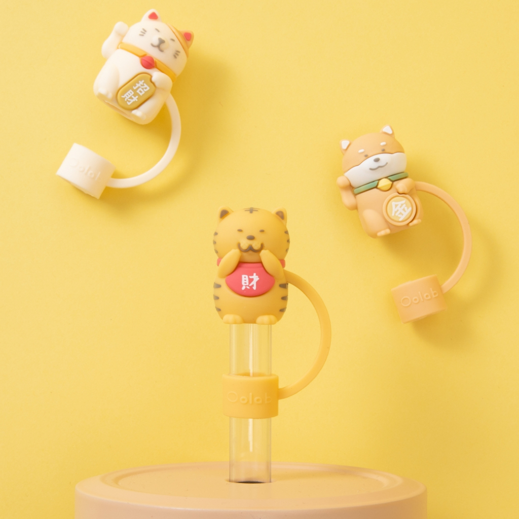 【Oolab 良杯製所】 吉祥物系列蓋造型矽膠防塵吸管蓋 (9款)開運貓戀愛款【細】|開運貓健康款【細】|小忠犬財運款【細】|小忠犬吉祥款【細】|喜氣虎喜樂款【細】|喜氣虎納福款【細】|開運貓招財款【粗】|小忠犬招財款【粗】|喜氣虎招財款【粗】OthersOolab 良杯製所