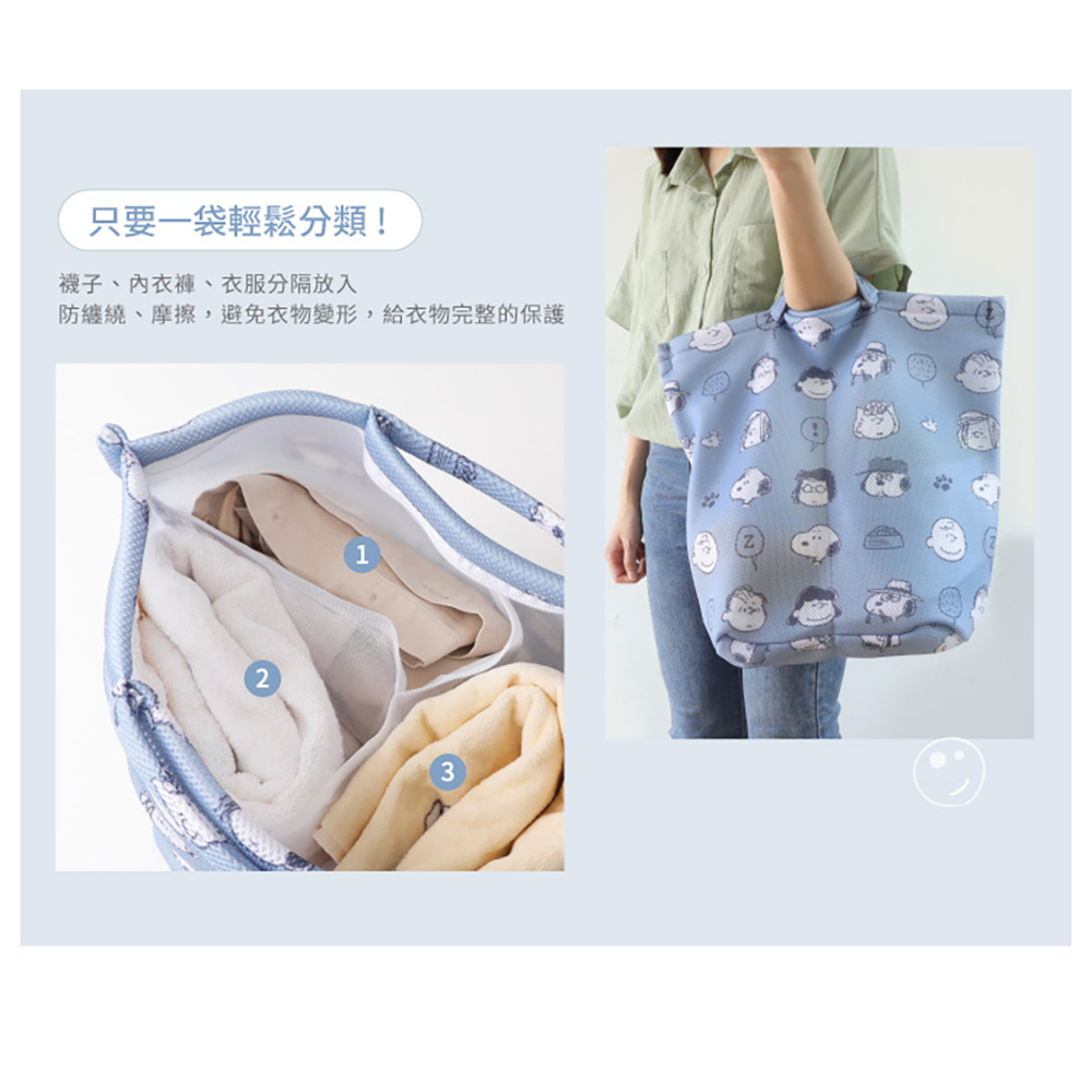 Peanuts史努比手提洗衣袋- Norns Original Design Snoopy 分隔式洗衣袋 大容量洗衣網