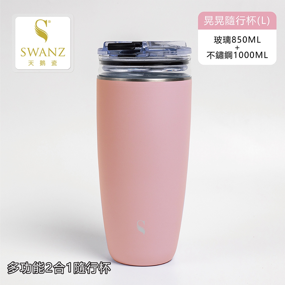 SWANZ天鵝瓷 | 兩用玻璃不鏽鋼杯 晃晃隨行杯 850ml / 多功能2合1 1杯變2杯 保溫 晃杯米白色|海洋藍|紫羅蘭|薄荷綠|珊瑚粉Water Bottles & AccessoriesSWANZ天鵝瓷官方旗艦店