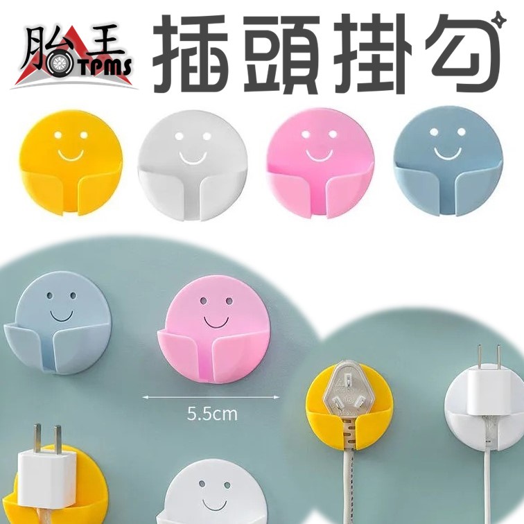 笑臉插頭掛勾 延長線掛勾 掛勾 掛鉤 收納掛鉤粉色|白色|藍色|黃色HooksT.K.胎王商城旗艦店