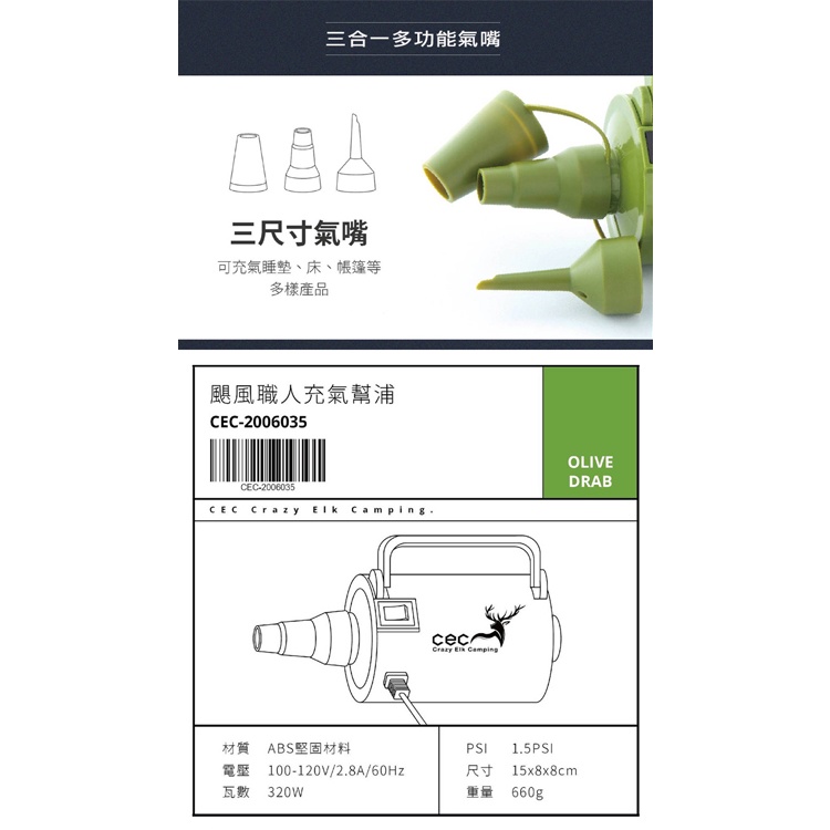 CEC風麋露 颶風職人充氣幫浦 充抽兩用電動打氣機 電動充氣泵 睡墊充氣機 充氣馬達 露營打氣筒 充氣抽氣兩用軍綠|榛果可可Air Pumps, Parts & AccessoriesSolar Life 索樂生活 | Keith鎧斯鈦台灣總代理