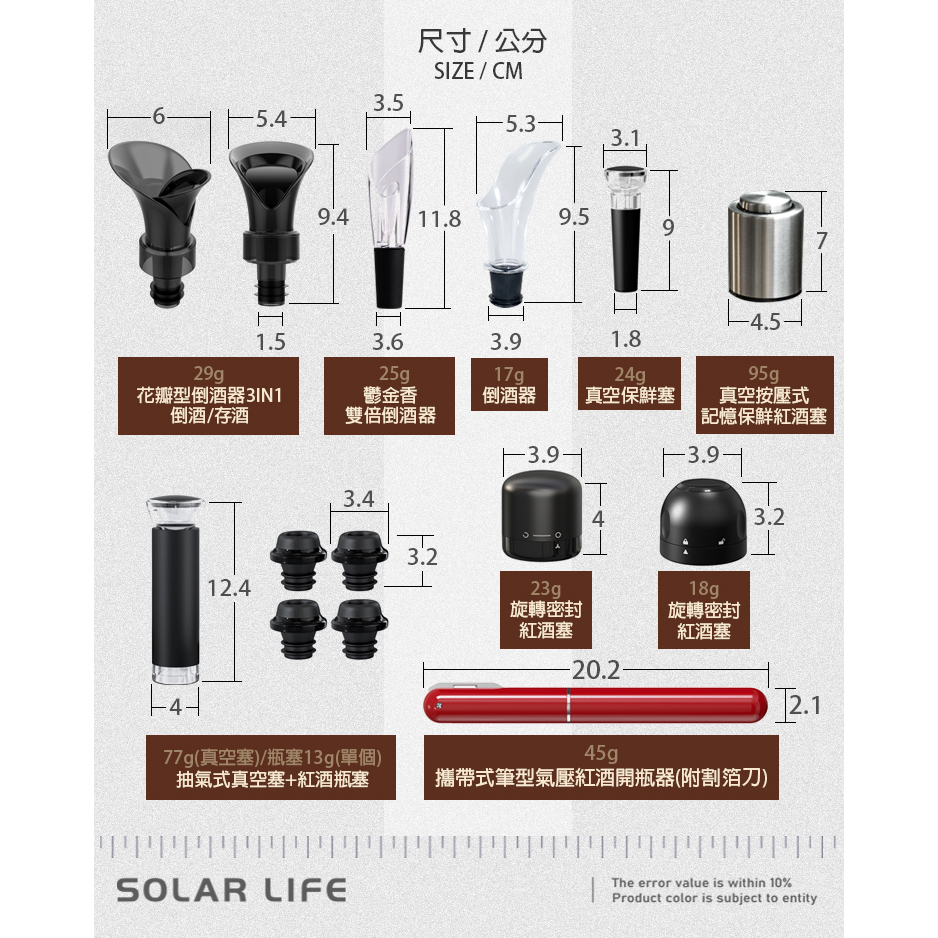 Solar Life 索樂生活 真空按壓式紅酒塞 醒酒倒酒器 筆型氣壓紅酒開瓶器 保鮮密封存酒香檳 抽氣酒瓶塞 葡萄酒塞旋轉密封紅酒塞|攜帶式筆型氣壓紅酒開瓶器(附割箔刀)|鬱金香雙倍醒酒倒酒器|真空按壓式記憶保鮮紅酒塞|抽氣式真空紅酒保鮮塞|抽氣式真空紅酒保鮮塞+倒酒器|花瓣型倒酒器3IN1(存酒/倒酒/醒酒)|旋轉密封香檳塞|抽氣式真空塞+4紅酒瓶塞Tea, Coffee & Bartending EquipmentsSolar Life 索樂生活 | Keith鎧斯鈦台灣總代理