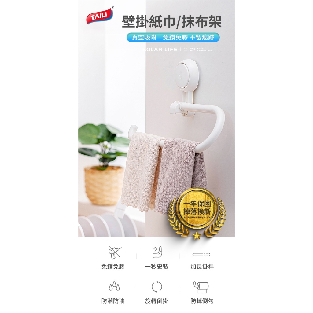 TAILI太力 真空吸盤廚房紙巾架 餐巾紙架 吸盤捲筒架 無痕紙巾掛架 毛巾抹布架 廚房掛勾TAILI太力 真空吸盤廚房紙巾架 餐巾紙架 吸盤捲筒架 無痕紙巾掛架 毛巾抹布架 廚房掛勾HooksSolar Life 索樂生活 | Keith鎧斯鈦台灣總代理