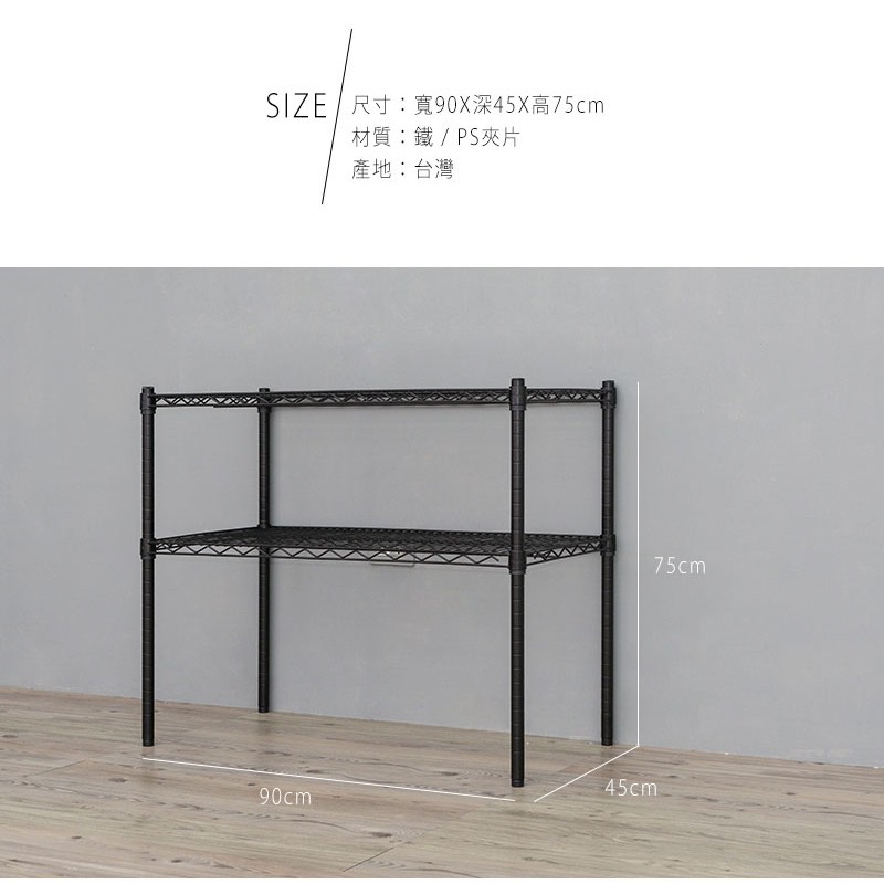 比架王 荷重型 90x45x75cm二層波浪架(烤漆) /收納架/波浪架/置物架/鐵架黑色|白色Shelves & RacksParity 比架王居家生活館