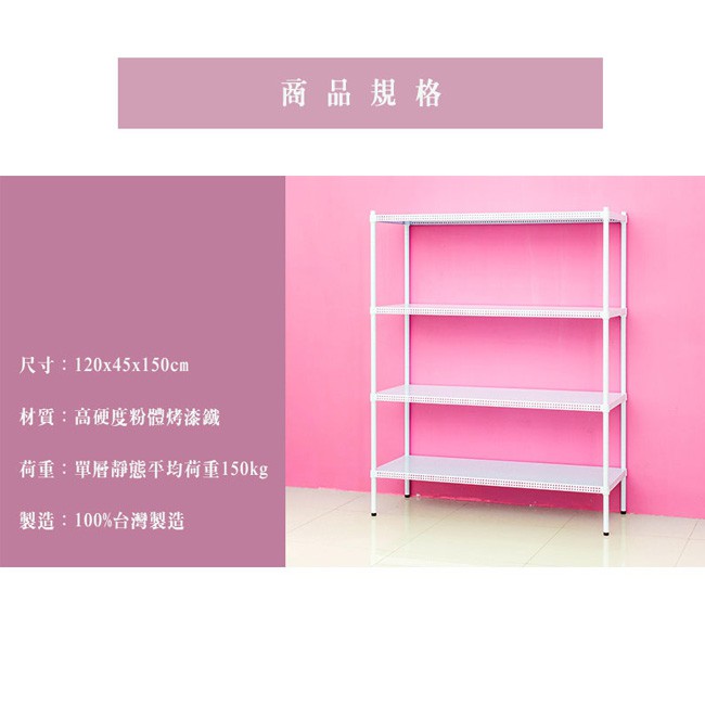 比架王 沖孔 120x45x150cm四層置物架(烤漆白) /收納架/波浪架/置物架/鐵架比架王 沖孔 120x45x150cm四層置物架(烤漆白) /收納架/波浪架/置物架/鐵架Shelves & RacksParity 比架王居家生活館