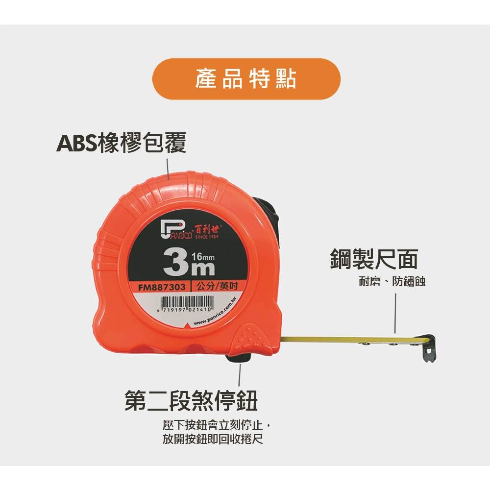 【Panrico 百利世】3M鋼捲尺 日本鋼材尺帶 雙煞車鋼捲尺 公分/英吋標示 3Mx16mm【Panrico 百利世】3M鋼捲尺 日本鋼材尺帶 雙煞車鋼捲尺 公分/英吋標示 3Mx16mmToolsPanrico 百利世工具職人館