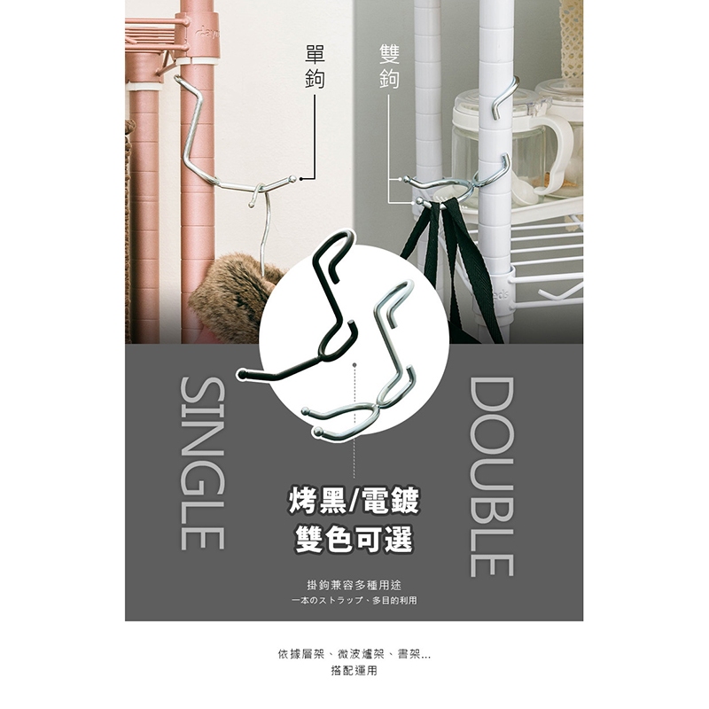 比架王 1英吋鐵管掛鉤〔單鉤/雙鉤〕兩色可選 衣帽掛/皮帶/領帶/掛勾/鐵架掛勾/電鍍/黑色/層架/卡扣式雙鉤-黑色|雙鉤-銀色|單鉤-黑色|單鉤-銀色HooksParity 比架王居家生活館