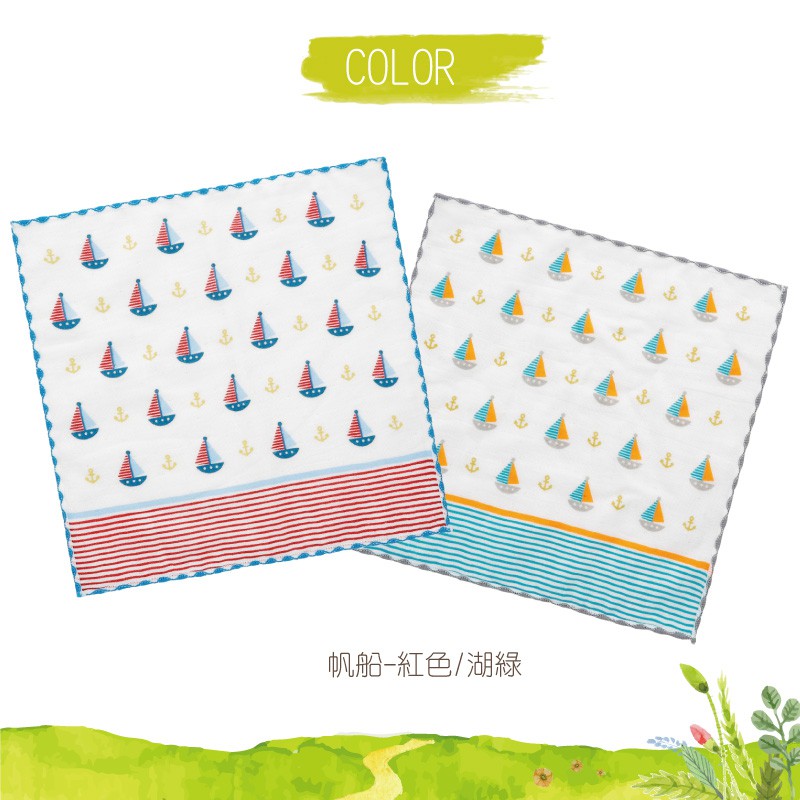 貝柔童話純棉抗菌紗布小方巾_帆船紅色|湖綠Towels & BathrobesPeilou 貝柔