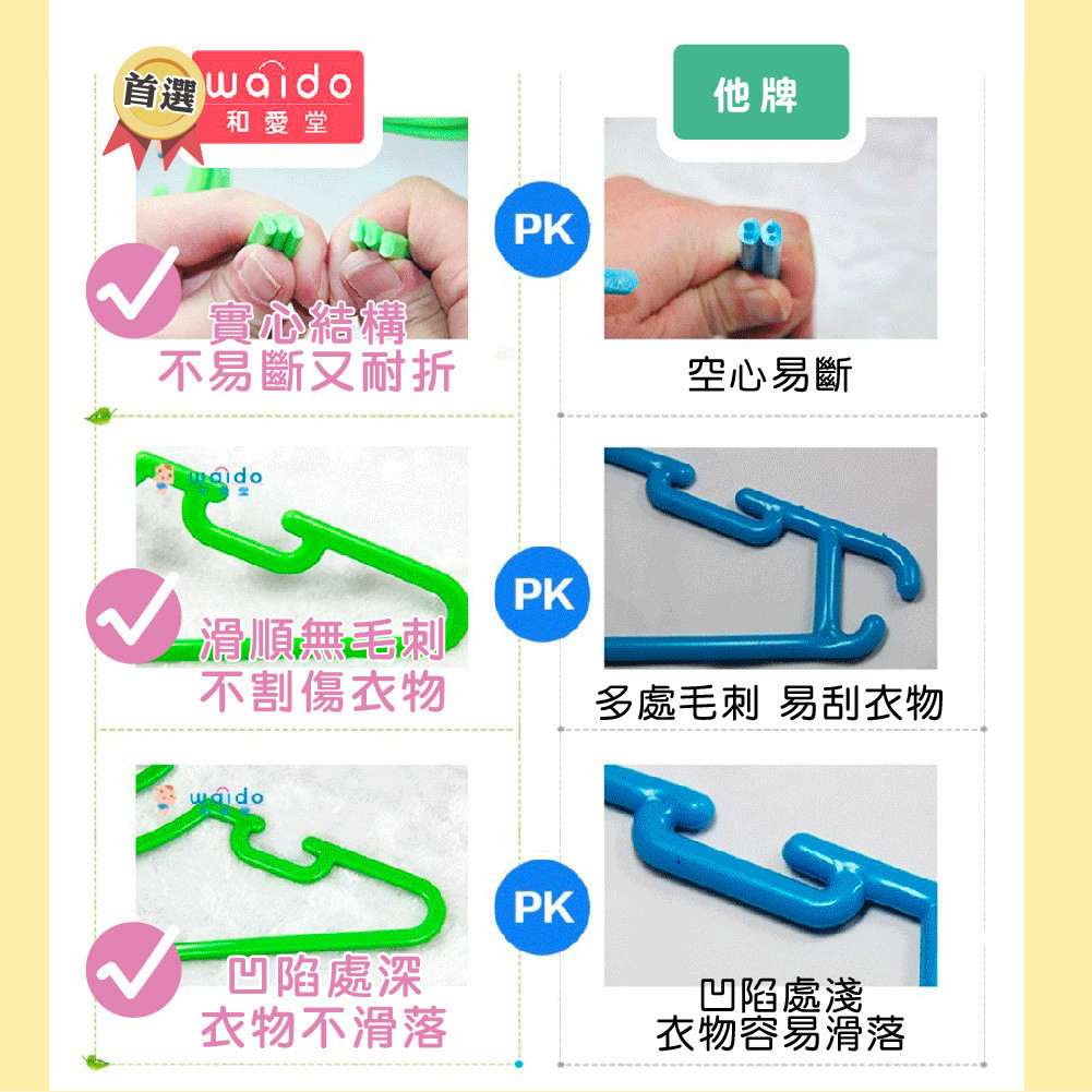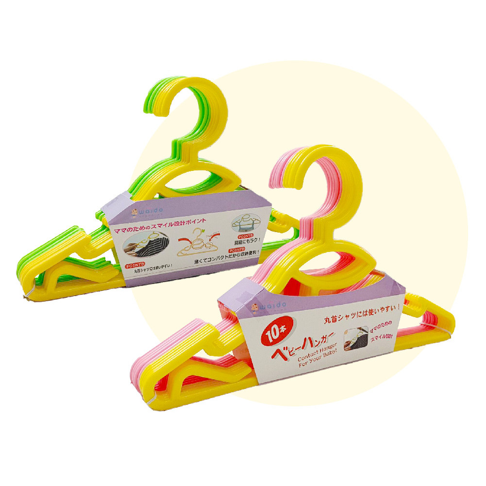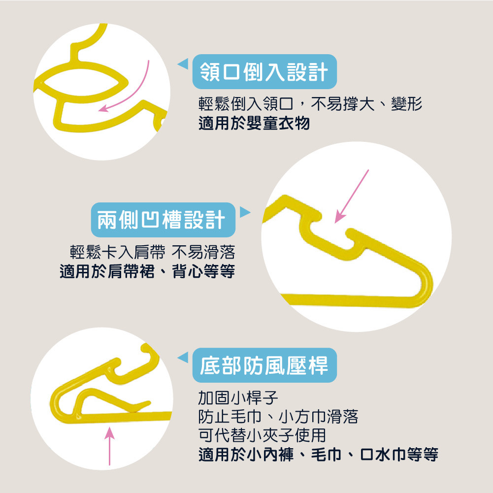 【日本和愛堂 防滑超耐用】兒童衣架 衣架 曬衣架 嬰幼兒衣物收納 一組十入 可使用8年以上01. 清新款(綠+黃)|02. 溫馨款(粉+黃)|03. 純色款-黃色|04. 純色款-粉色Hangers & PegsPeNi培婗