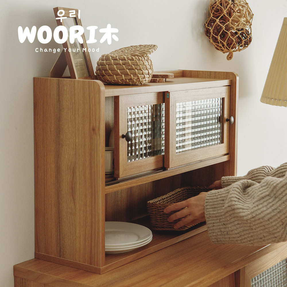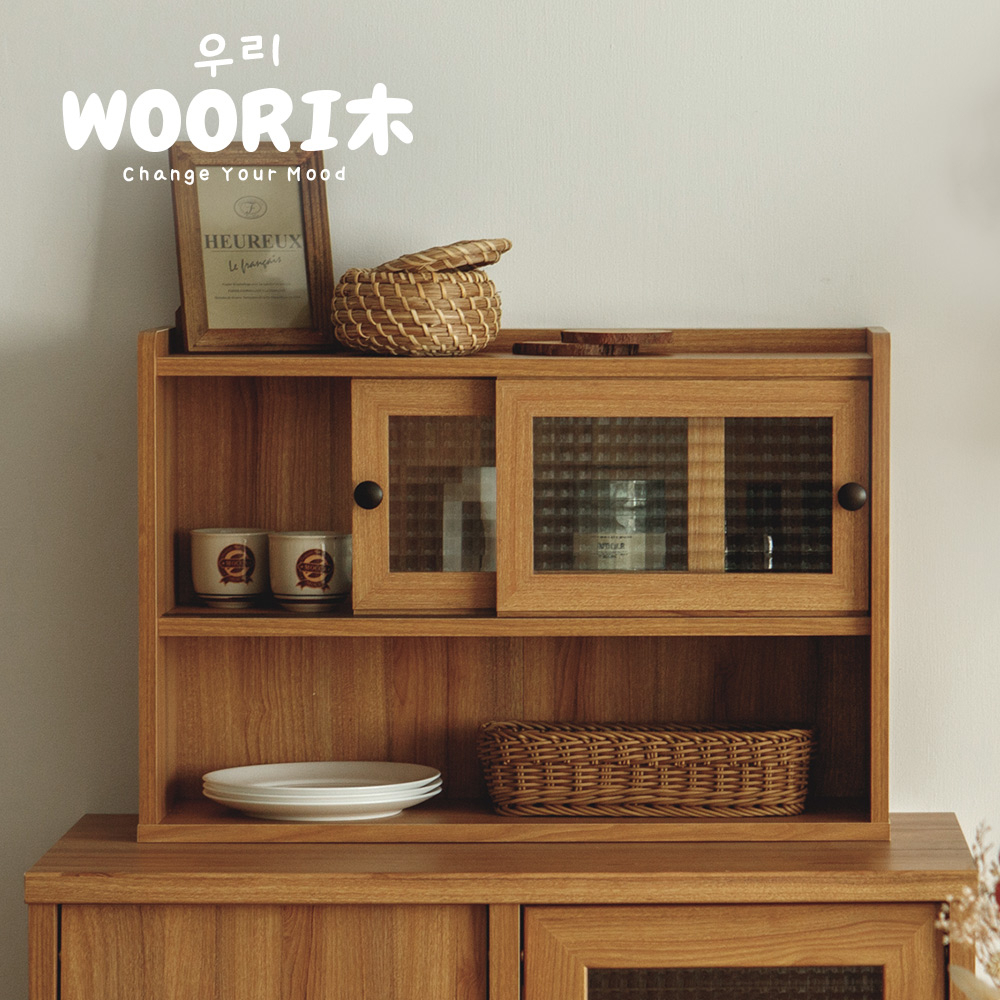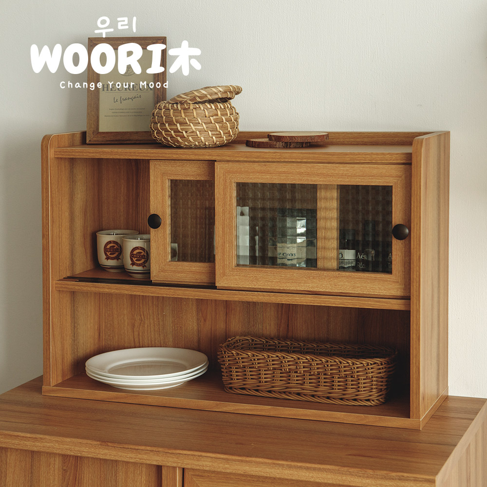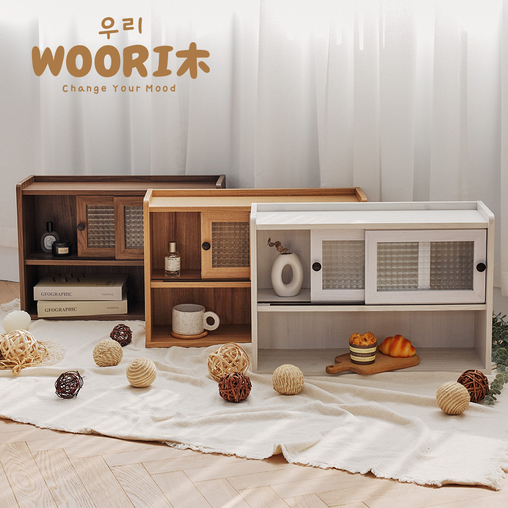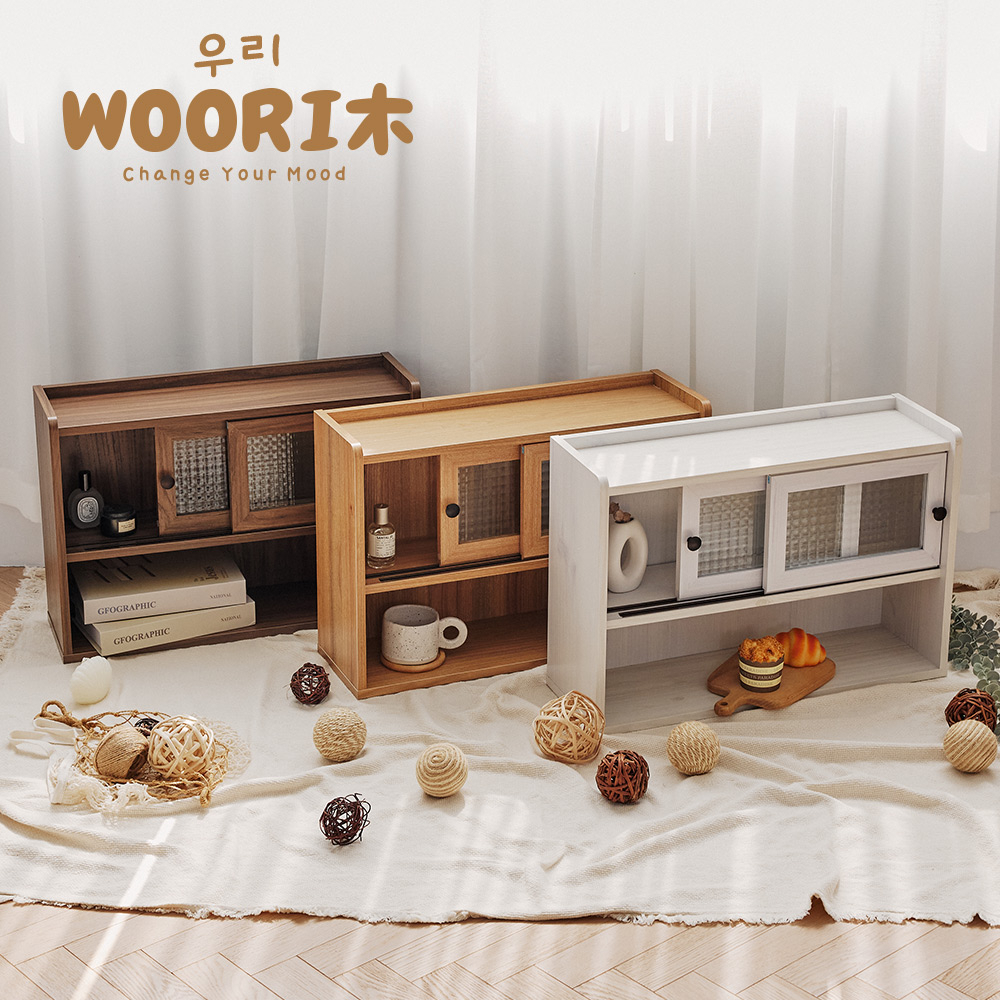 完美主義│WOORI木▹復古雙開玻璃門收納小櫃 置物櫃 置物架 儲藏櫃 廚房收納櫃 櫥櫃 邊櫃 床頭櫃【P0028】胡桃|原木|木紋白Storage Boxes, Bags & BasketsPeachyLife完美主義