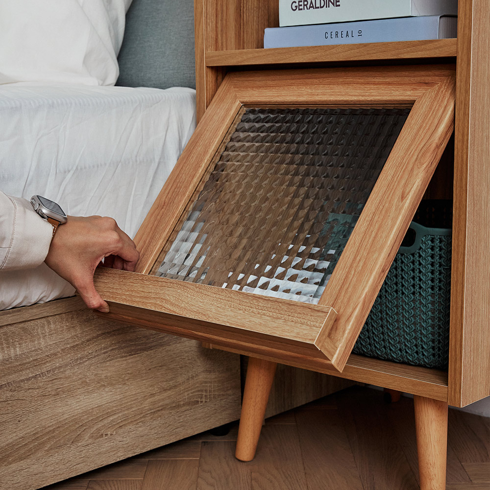 完美主義│WOORI木▹復古掀蓋玻璃床邊櫃 床頭櫃 邊几 收納櫃 玻璃櫃 收納櫃 玻璃 置物櫃【P0036】FCupboards & CabinetsPeachyLife完美主義
