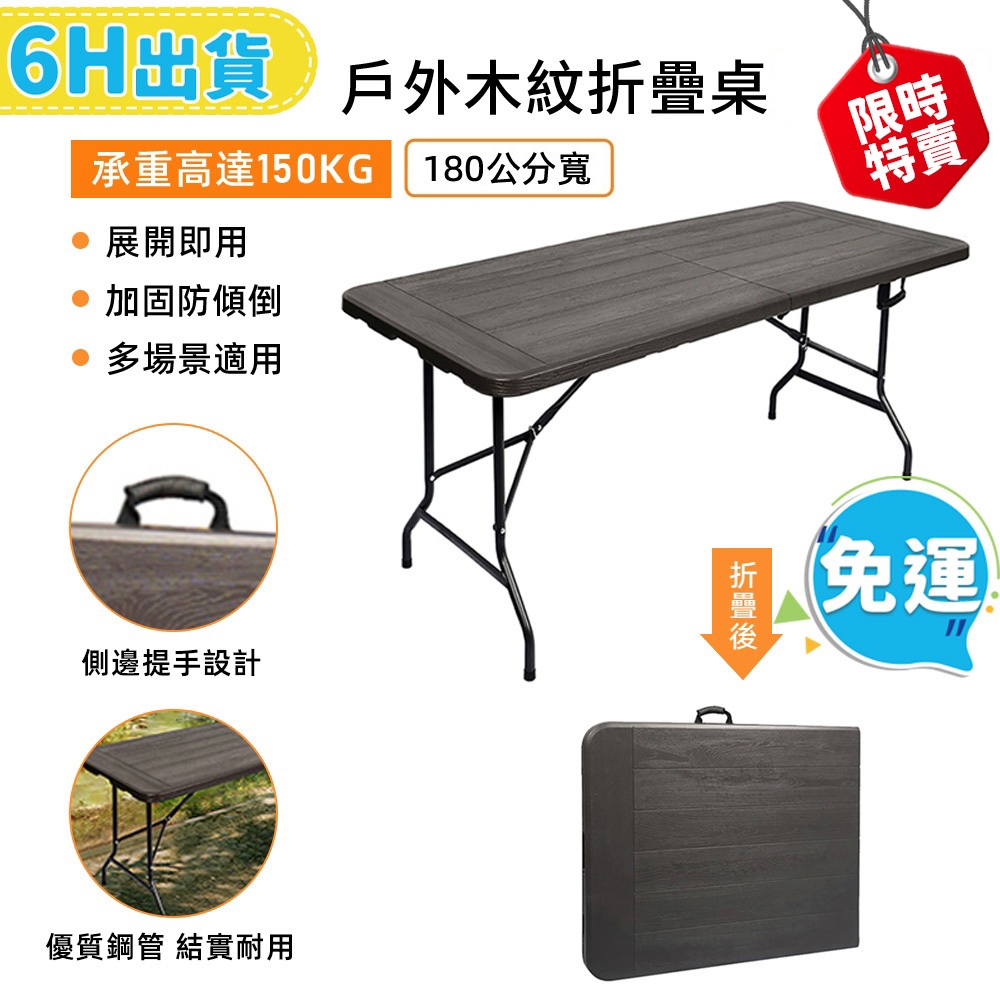 【柏詩互創】戶外木紋折疊桌 折疊桌 露營桌 折疊餐桌 摺疊桌 長桌 擺攤桌 露營折疊桌 折疊桌子 野餐桌 戶外桌 折合桌木紋折疊椅(一入)-折疊收納/超強承重|木紋折疊桌-180*76*74CM|多張批發聯繫聊聊有優惠Desks & TablesPETDOS派多斯