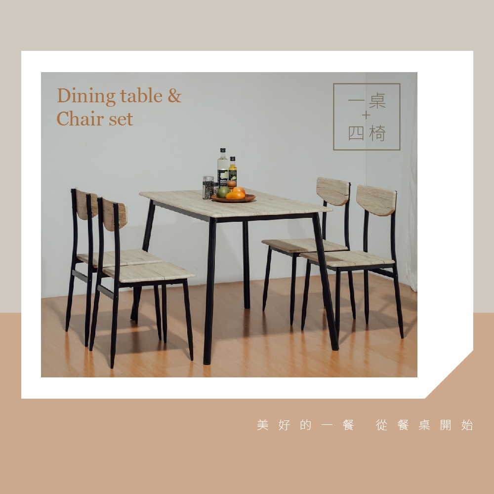 RICHOME DS087 傑佛理餐桌椅組 餐桌椅 餐桌 餐椅 工作桌 會議桌原木色+黑色Desks & TablesRICHOME 生活家居