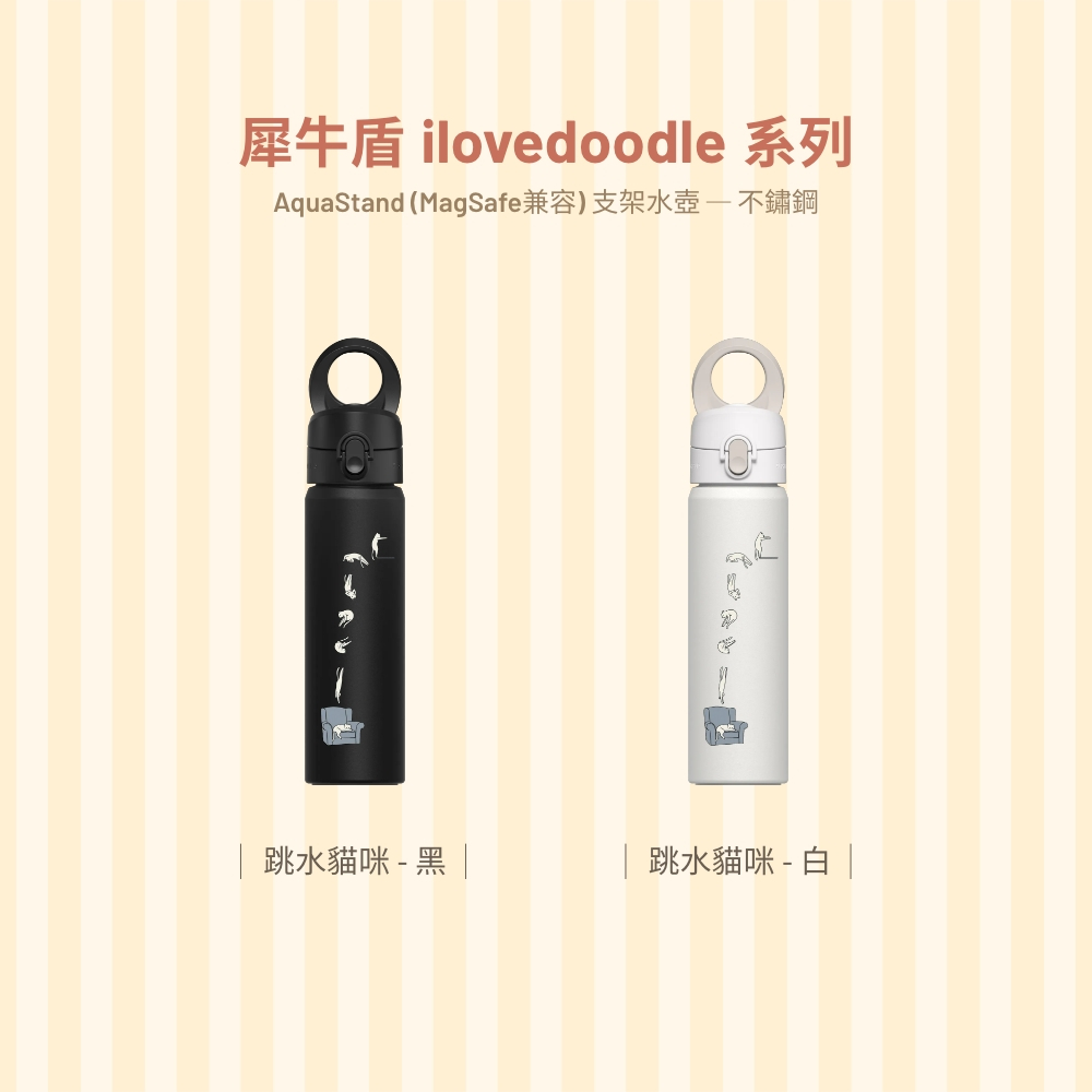 犀牛盾AquaStand磁吸水壺-不鏽鋼保溫瓶 700ml(MagSafe兼容)支架運動水壺∣ilovedoodle系列跳水貓咪/黑色,無吸管|跳水貓咪/白色,附吸管|跳水貓咪/白色,無吸管|跳水貓咪/黑色,附吸管Water Bottles & AccessoriesRHINOSHIELD 犀牛盾 官方旗艦店