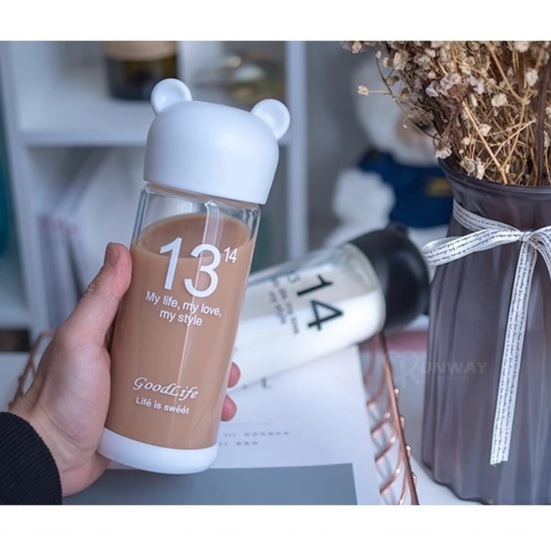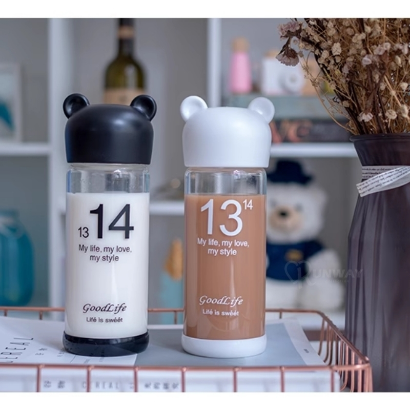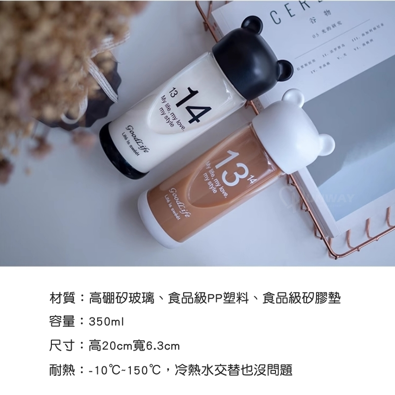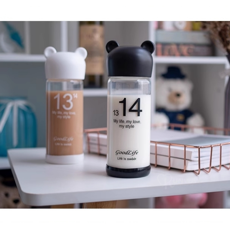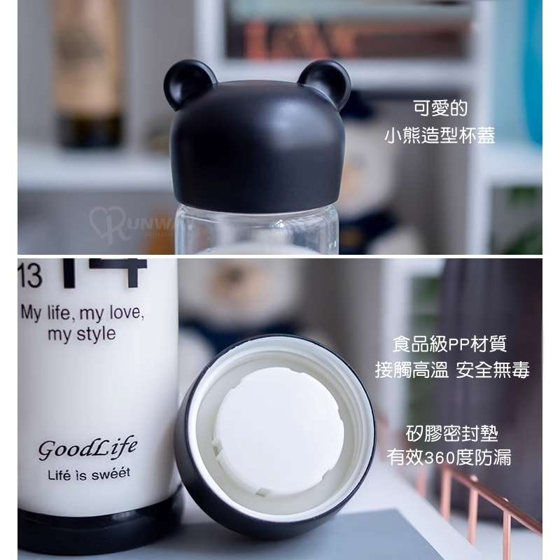 小熊造型 環保杯 350ml 果汁杯 玻璃杯 便攜帶蓋情侶杯 透明 時尚 隨身杯 高硼矽玻璃 水杯黑/350ml|白/350ml|(微瑕疵)白/350mlCups, Mugs & GlassesRunway Collection