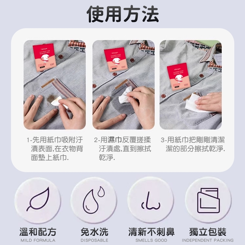 【RW】衣物去漬濕巾 去污濕紙巾 免手洗 魔力去漬濕巾 一次性清潔濕巾 不傷衣物 衣物清潔 去除髒污 清潔巾 去污 清潔去漬濕巾/單片包Laundry CareRunway Collection