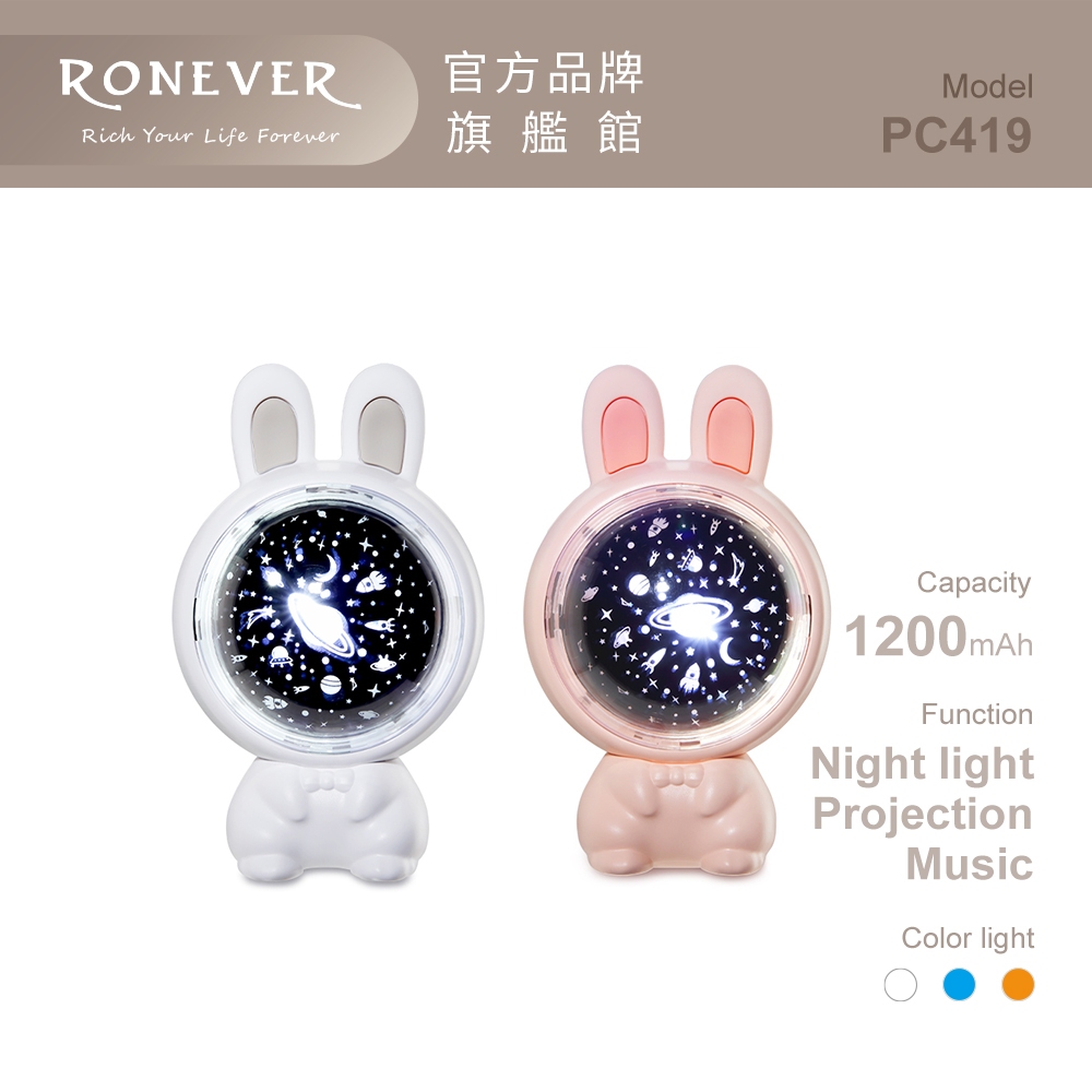 RONEVER PC419 / 兔子星光投影燈白色|粉色RONEVER 官方品牌館