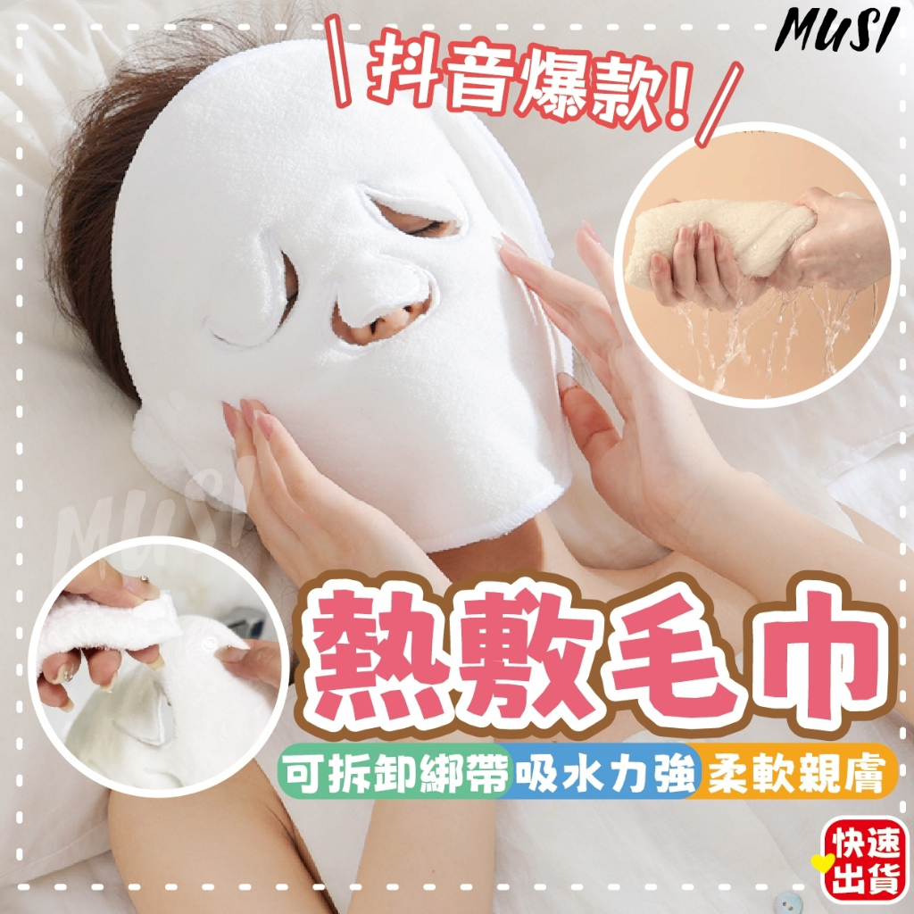 [台灣快發]熱敷毛巾 毛巾 面膜毛巾 敷臉毛巾 冷敷毛巾 雙層設計 加厚毛巾 美容用品熱敷毛巾 三孔綁帶 現貨Towels & BathrobesMUSI 口罩&包包帽子 專賣