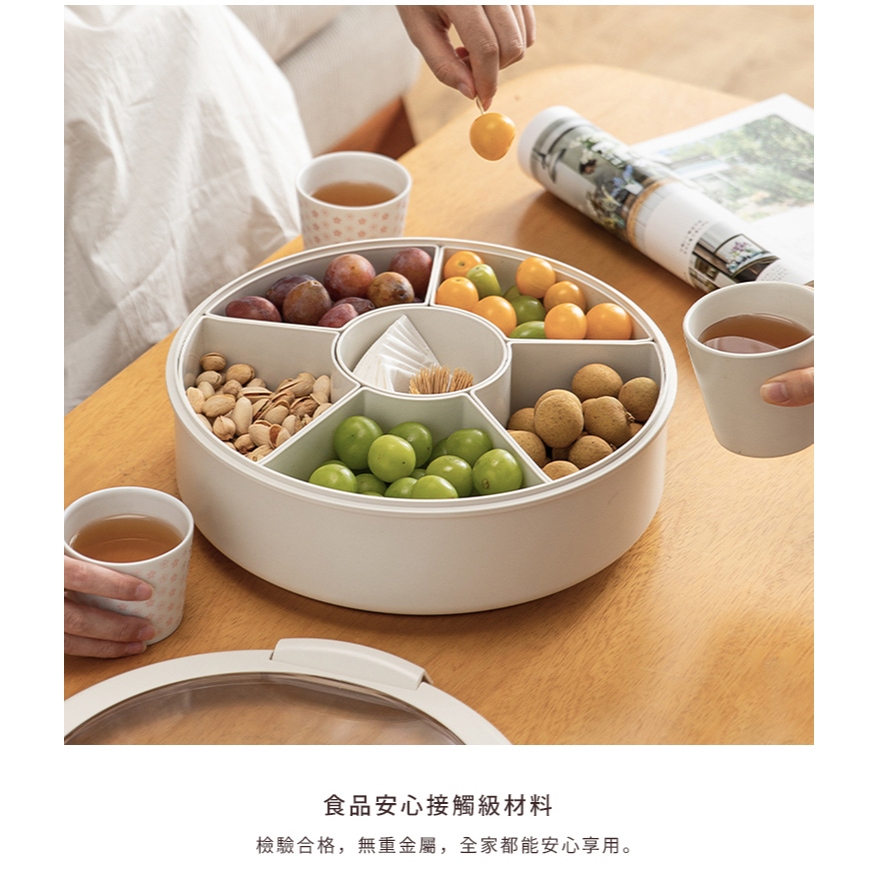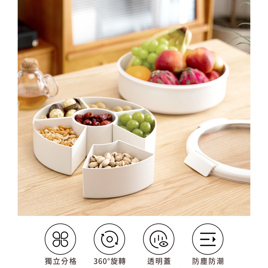 【日本霜山】ABS旋轉式6格乾果盤/零食盤(附蓋)-多色可選紅|米白Platesnicegoods 生活好東西