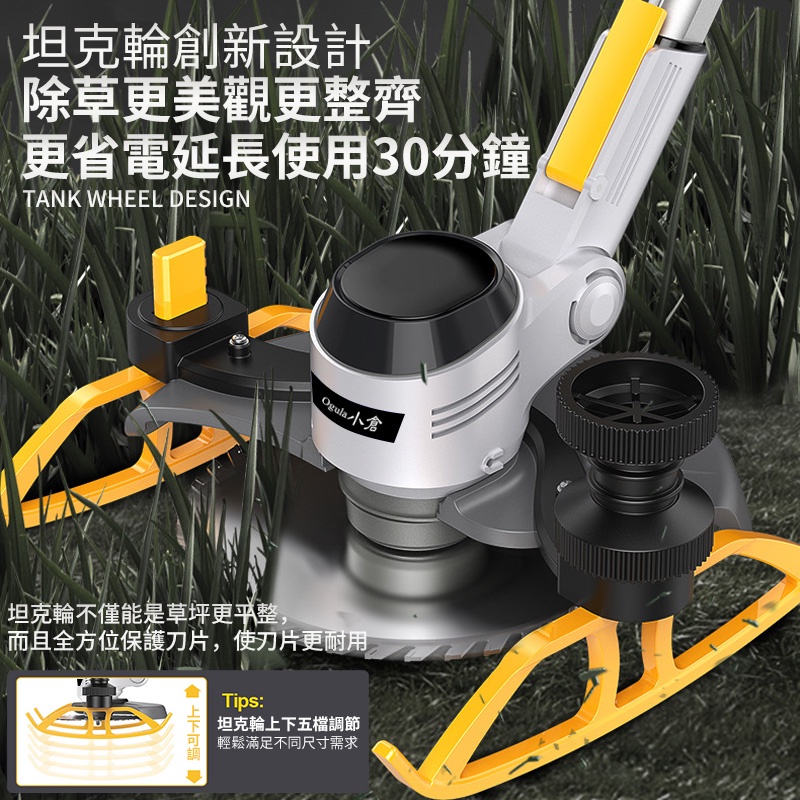 • 【Ogula小倉】割草機 除草機 電動割草機 無刷割草機 帶電量顯示-送可拆卸輔助輪 手推割草機【電池BSMI認證合格】