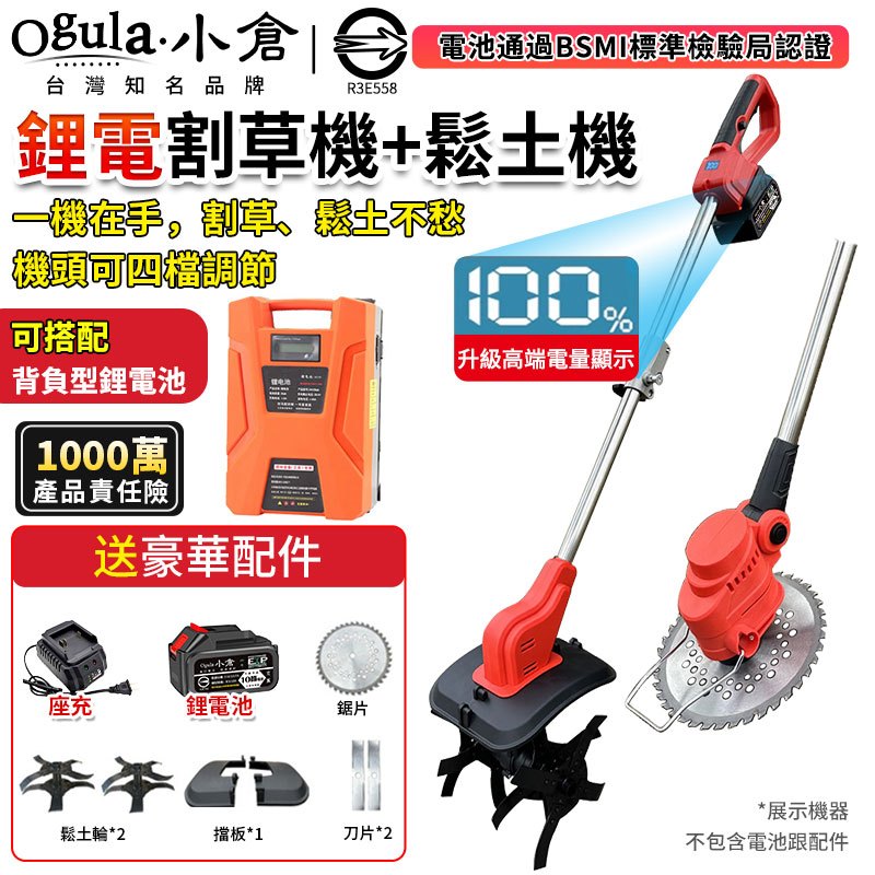 【Ogula小倉】割草機 鬆土機 除草機 電動割草機 電動鬆土機 微耕機 手推式割草機 一機兩用 帶電量顯示