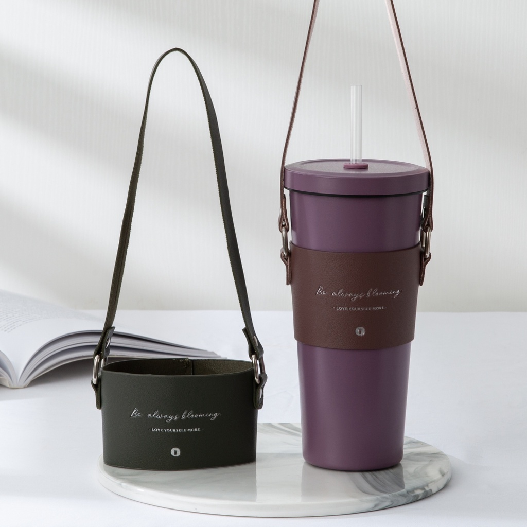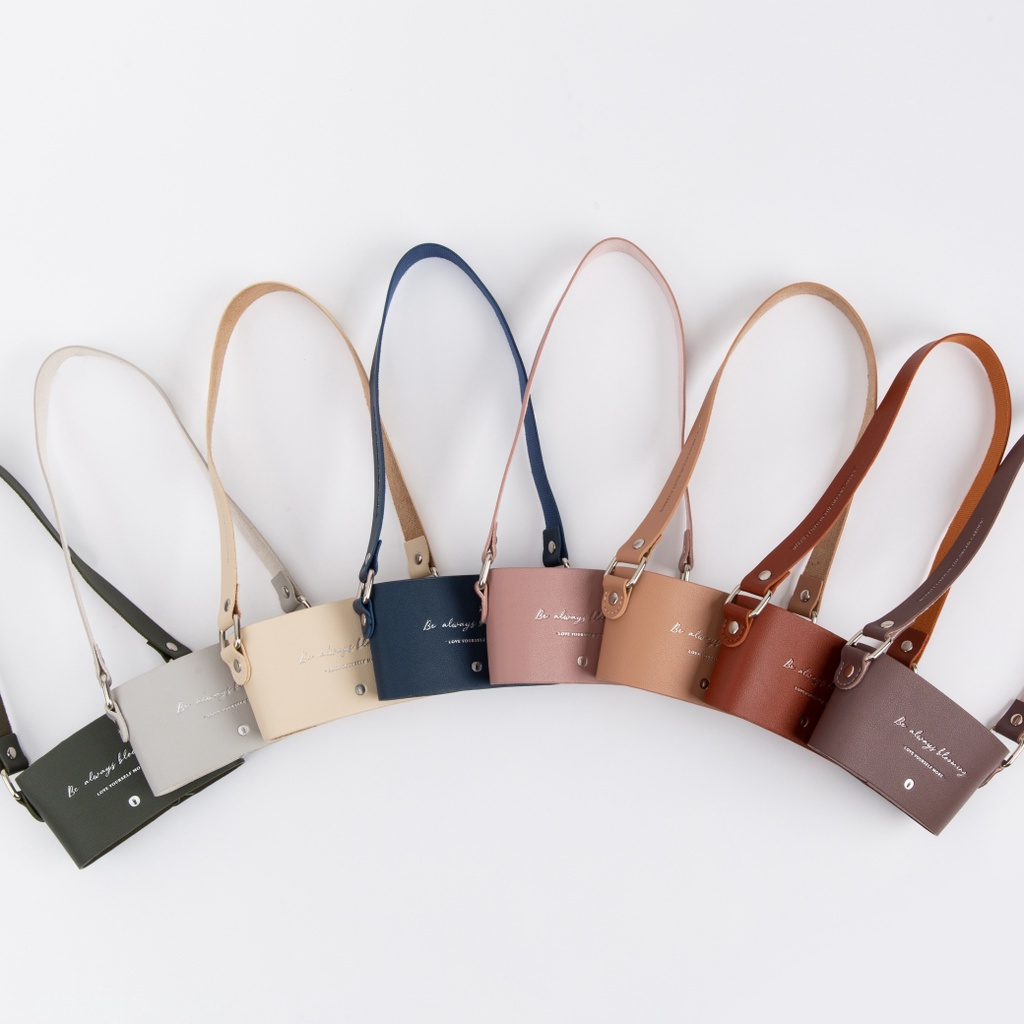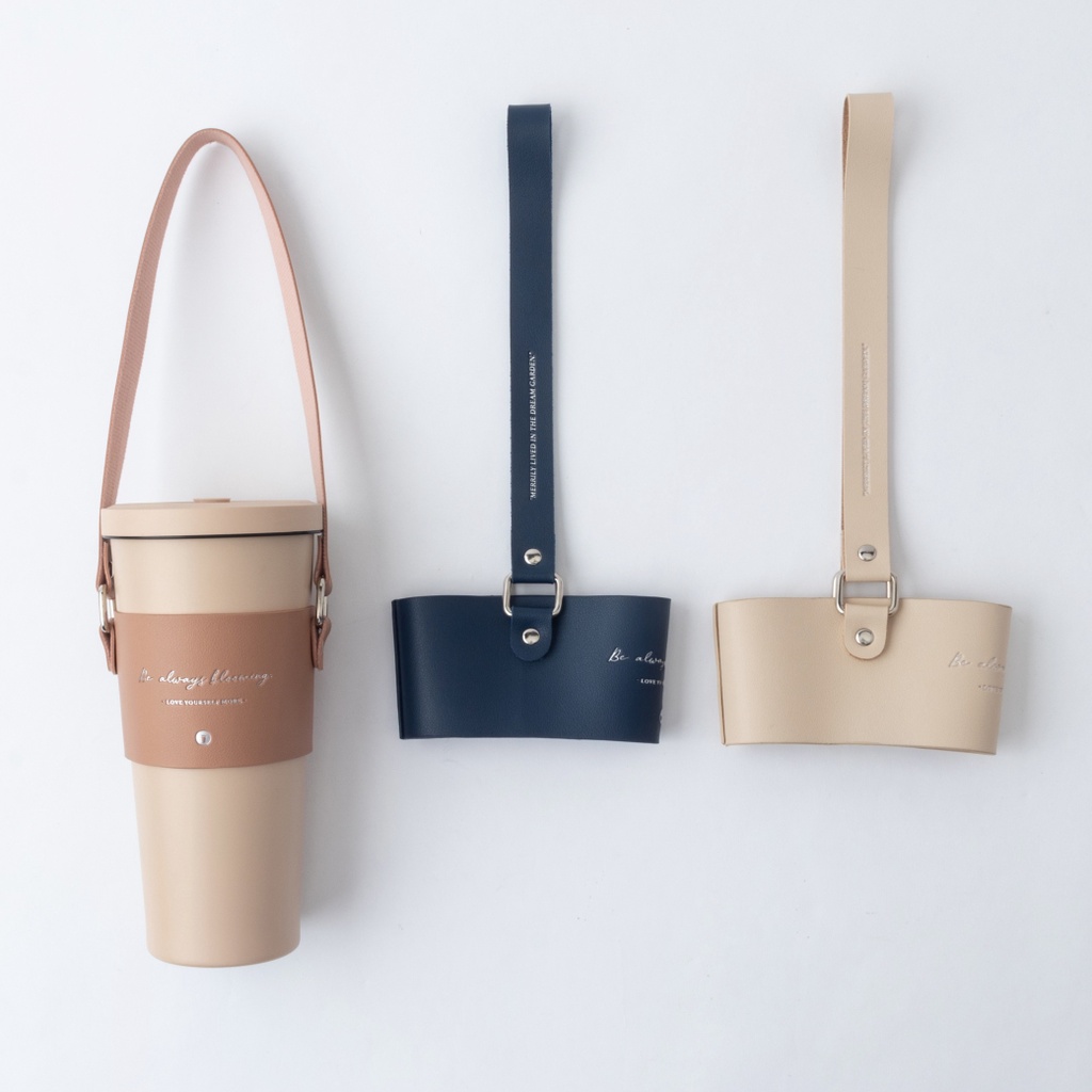 【Oolab 良杯製所】小莊園燙銀復刻皮革杯提袋 (八色)深藍|奶杏|卡其|磚紅|藕粉|淺灰|深灰|紫棕OthersOolab 良杯製所