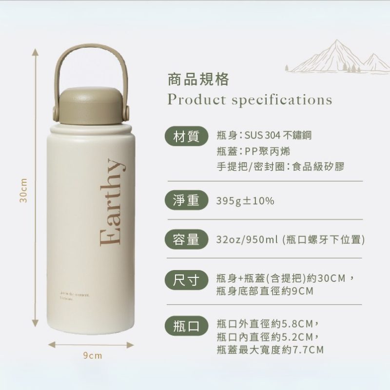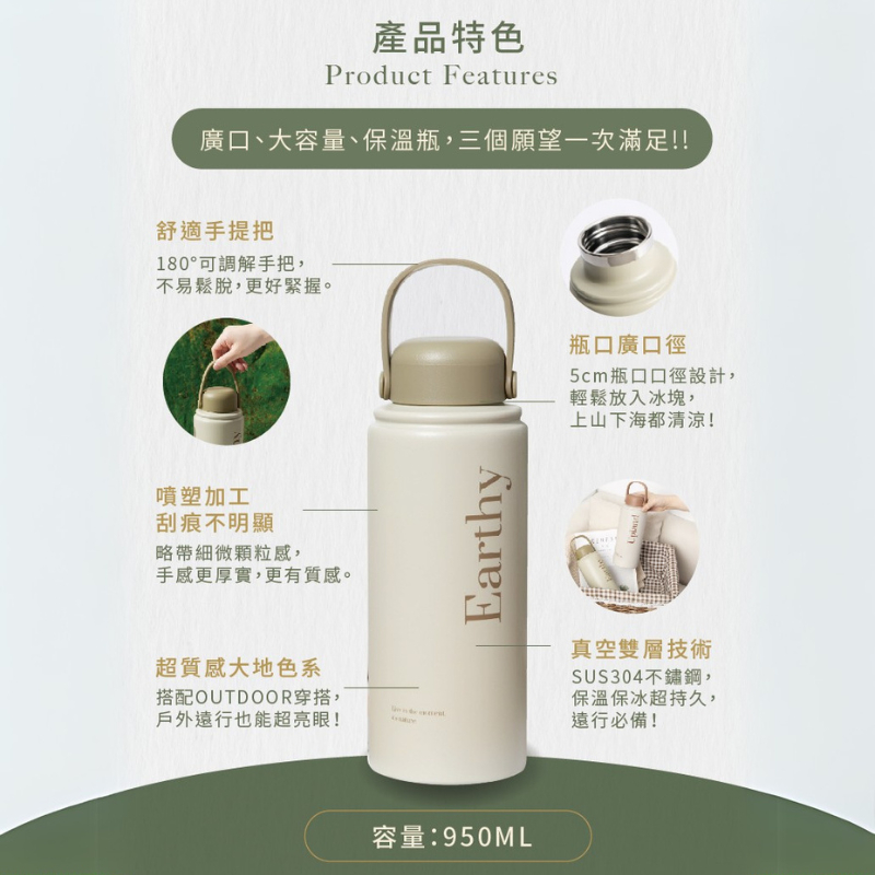 團購優惠(3入)|溫杉林系列 950ml 保溫瓶 不鏽鋼 大容量 保冷 保溫 戶外 露營高地棕|山嶺青|微風綠|冰河藍|砂礦咖Water Bottles & AccessoriesOolab 良杯製所