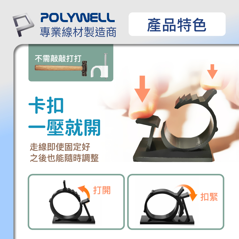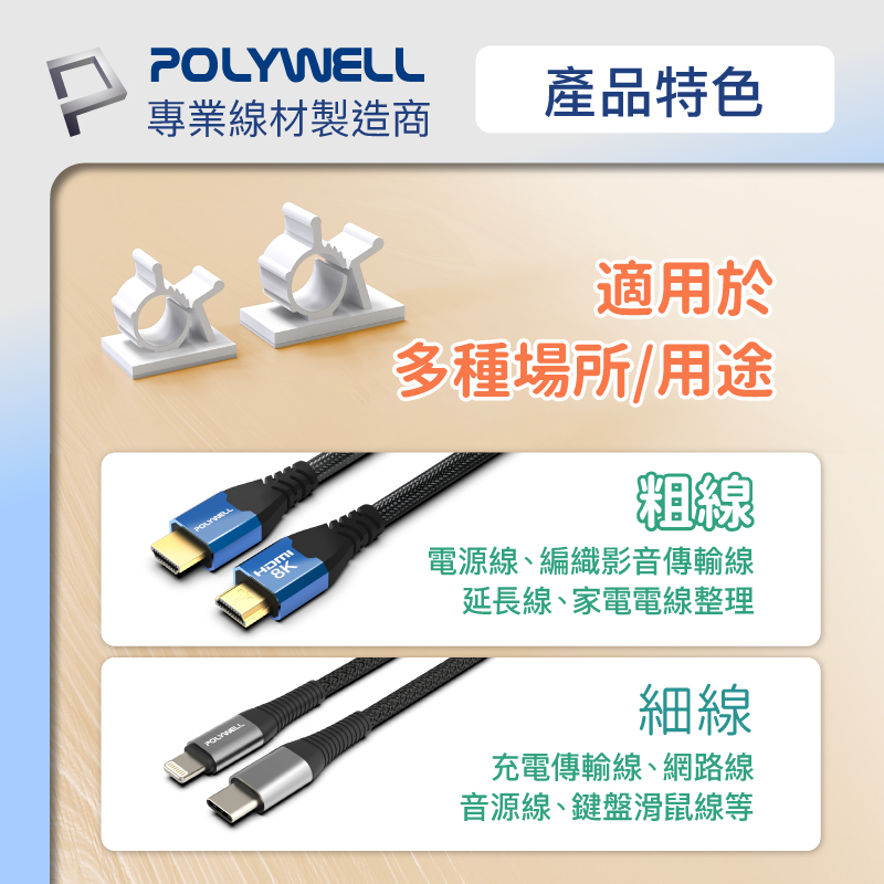 POLYWELL 可調式黏貼理線器 可依線徑調整固定位置 兩種尺寸 適用不同粗細充電線 傳輸線 寶利威爾 台灣現貨黑色,小號(8~10mm) – 20入|黑色,大號(12~14mm) – 20入|白色,小號(8~10mm) – 20入|白色,大號(12~14mm) – 20入OthersPOLYWELL寶利威爾官方旗艦店