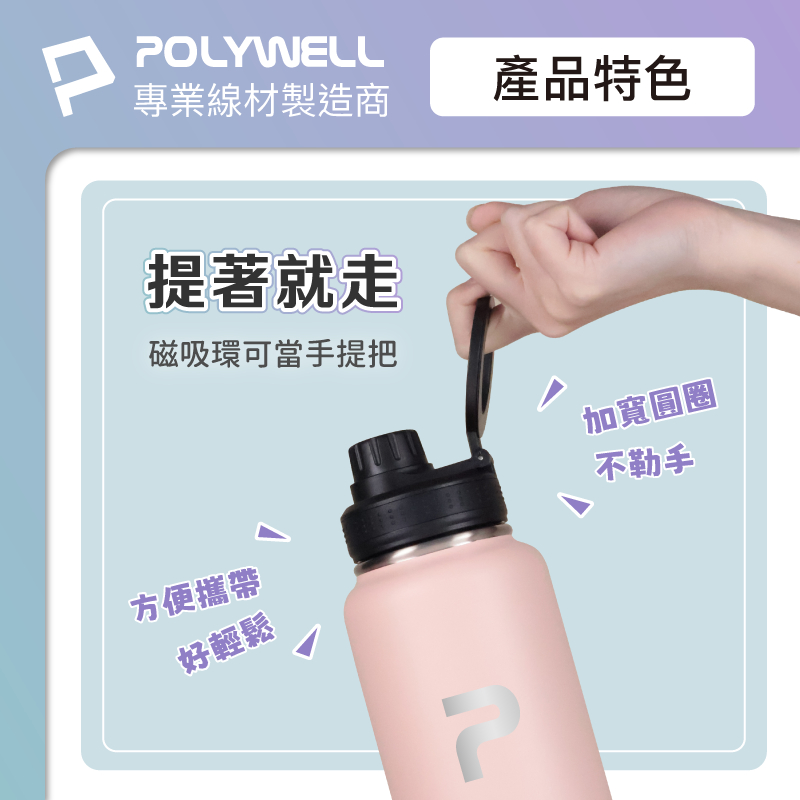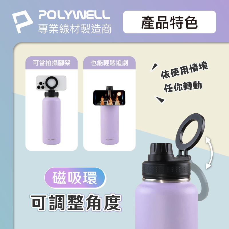 POLYWELL 磁吸不銹鋼保溫瓶 1000ML 手機腳架 SUS304不鏽鋼 大容量保溫瓶 環保杯 寶利威爾 台灣現貨米白色|粉紅色|深藍色|淺藍色|淺紫色|湖水綠色|白色Water Bottles & AccessoriesPOLYWELL寶利威爾官方旗艦店
