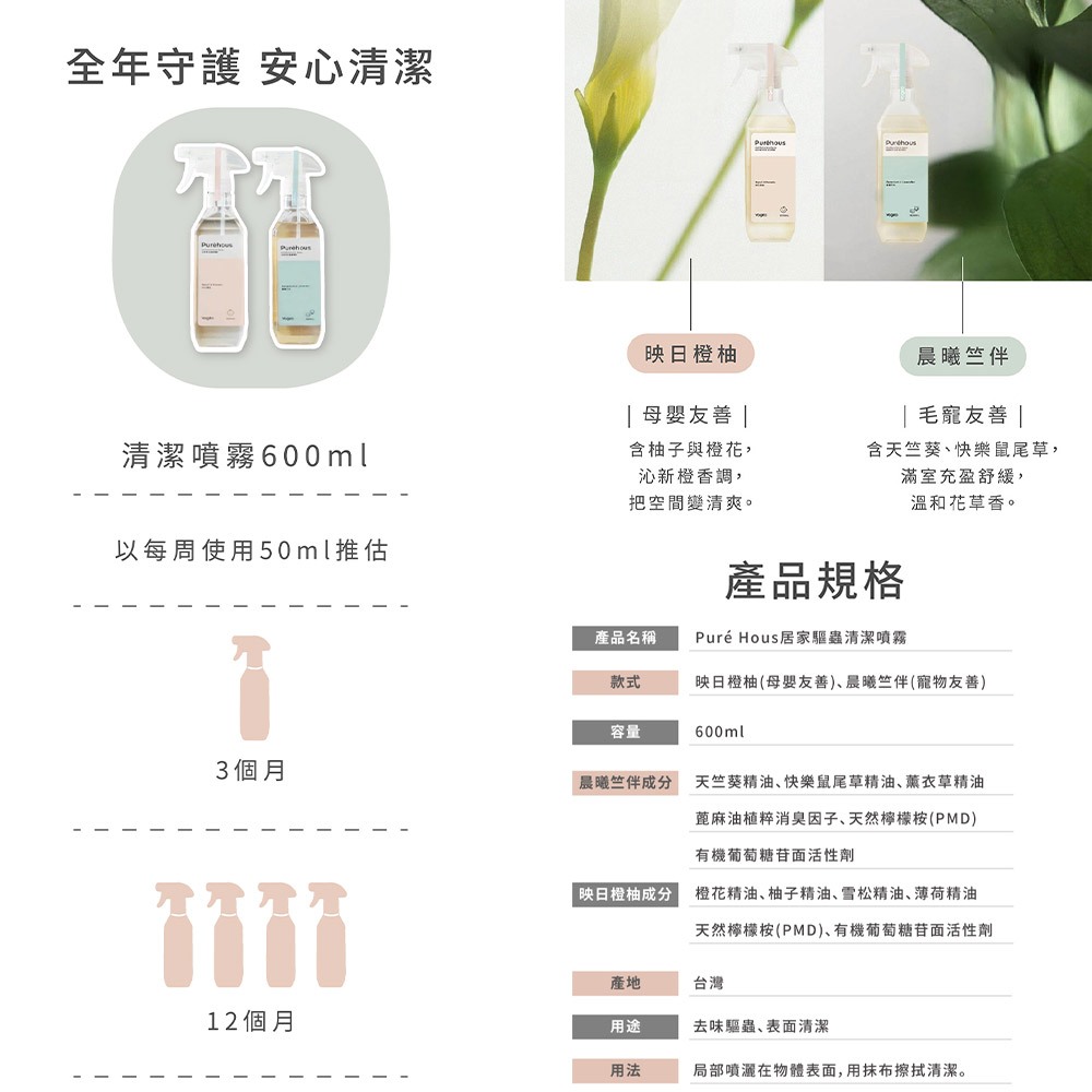 Puréhous 驅蟲居家清潔噴霧 600ml晨曦竺伴(寵物友善-去味型),超商/店到店取貨(最多6瓶)|晨曦竺伴(寵物友善-去味型),宅配(數量不限)|映日橙柚(母嬰友善-抗菌型),超商/店到店取貨(最多6瓶)|映日橙柚(母嬰友善-抗菌型),宅配(數量不限)Cleaning Agentsplus健康醫療專營店