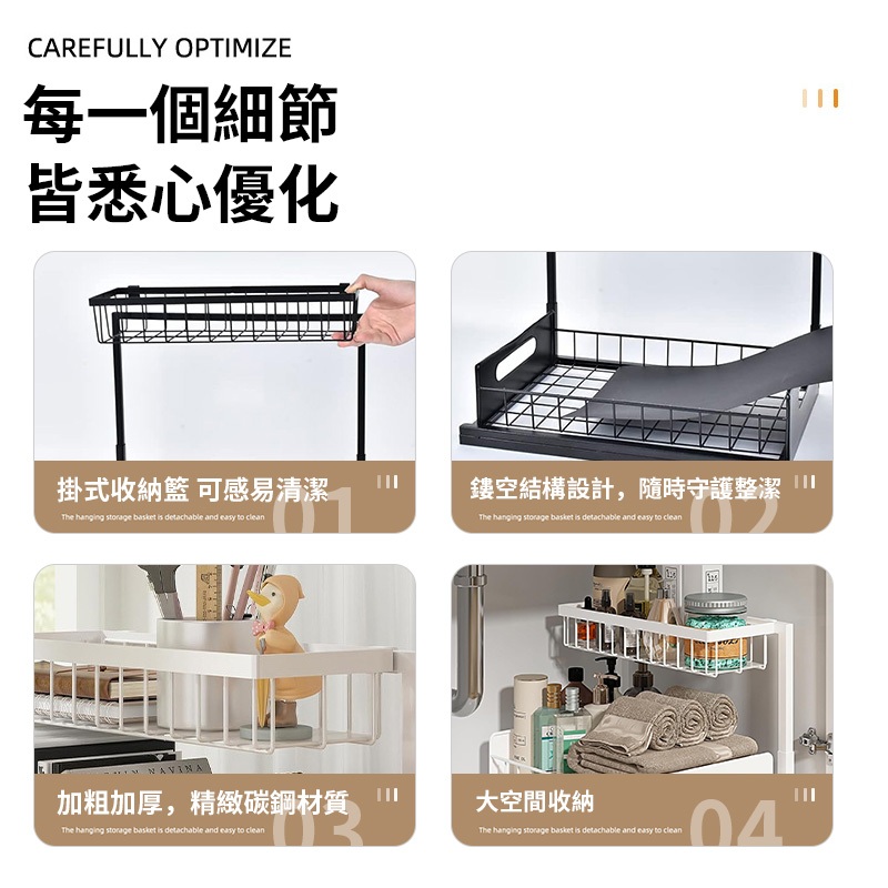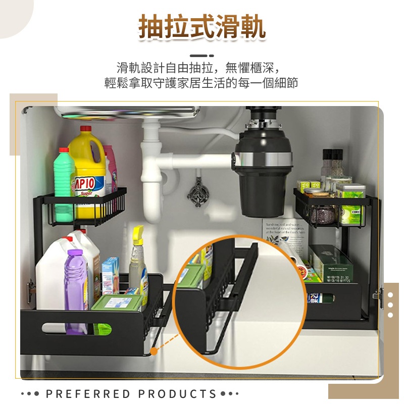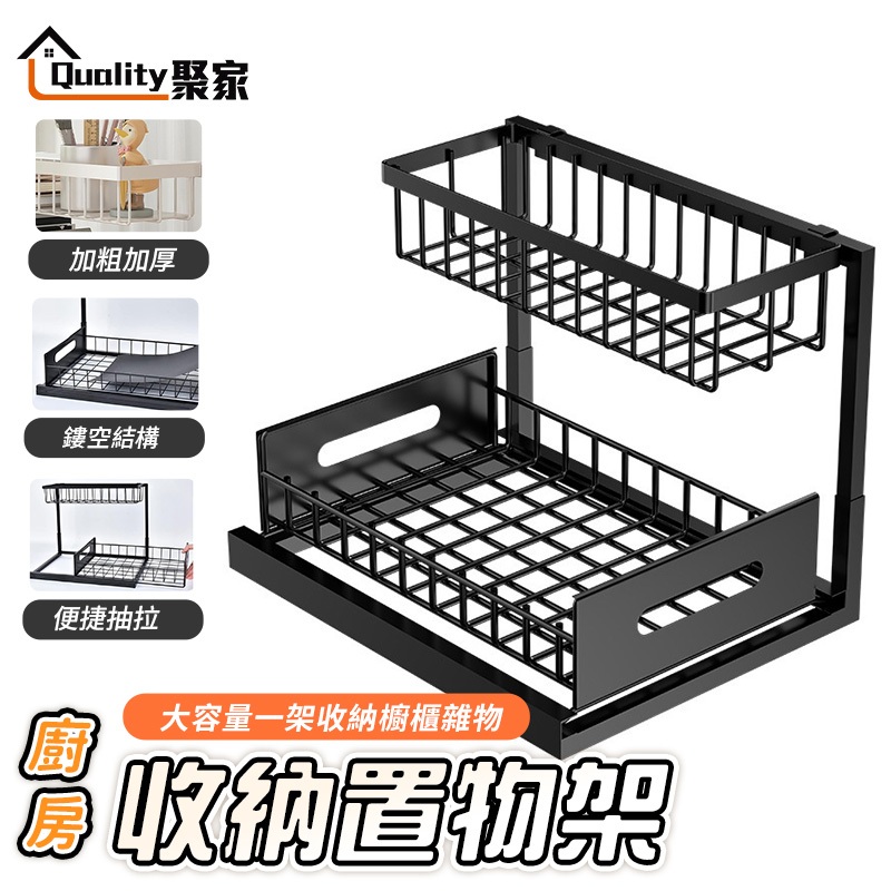 【Quality 聚家】廚房收納架 置物架 下水槽收納架 多功能調料架 收納抽拉框 調料架 收納架【10%蝦幣回饋】(雙層抽拉置物架)黑色|(雙層抽拉置物架)白色Kitchen RacksQuality 聚家【官方旗艦店】