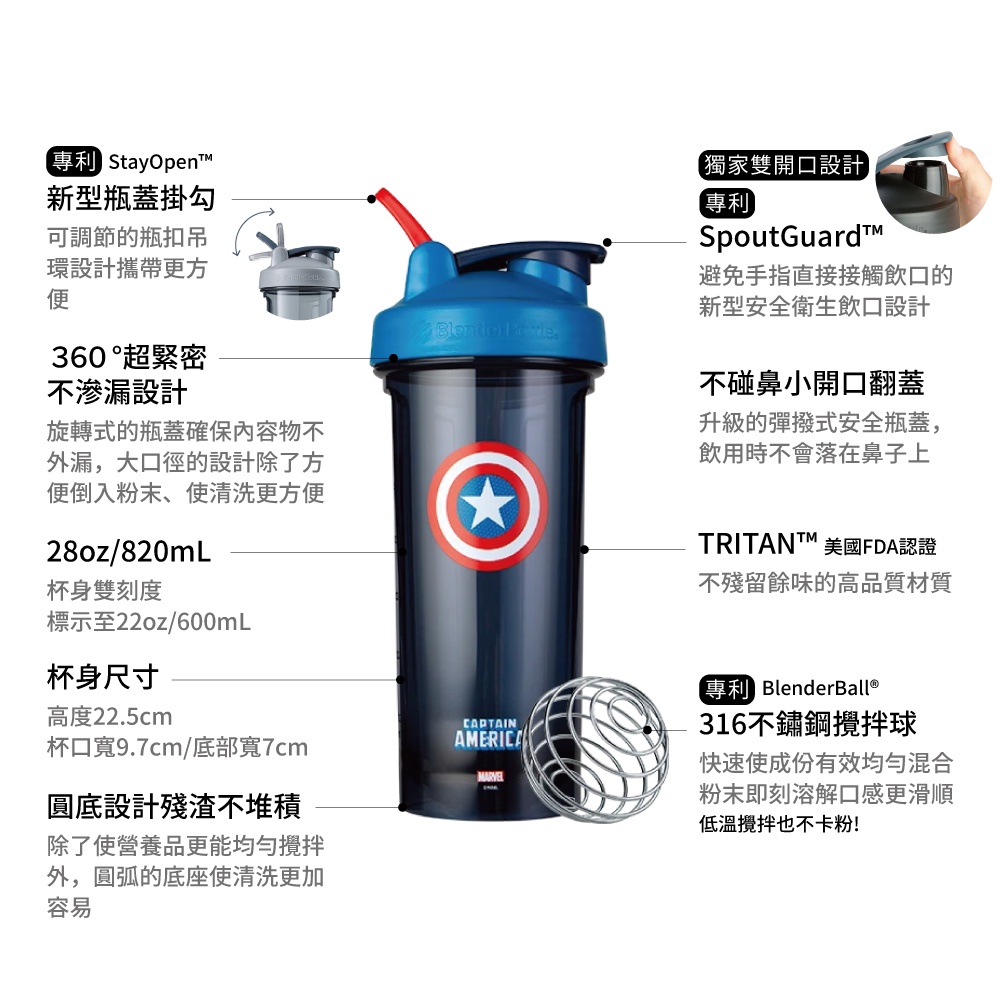 【Blender Bottle】Pro28系列 | Marvel Tritan 漫威英雄 搖搖杯『美國原裝進口』運動水壺雷神索爾|浩克|美國隊長|鋼鐵人|蜘蛛人|驚奇隊長Cups, Mugs & GlassesOwala|Blender Bottle 美國官方授權旗艦店