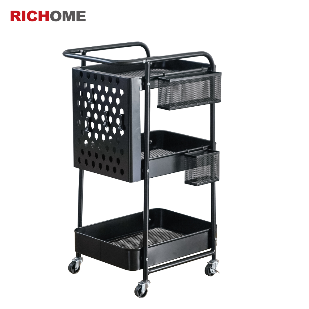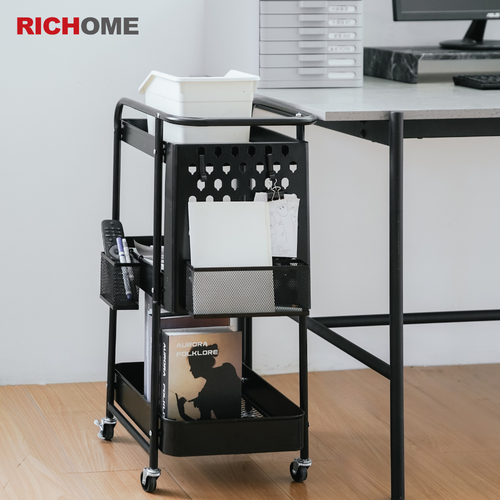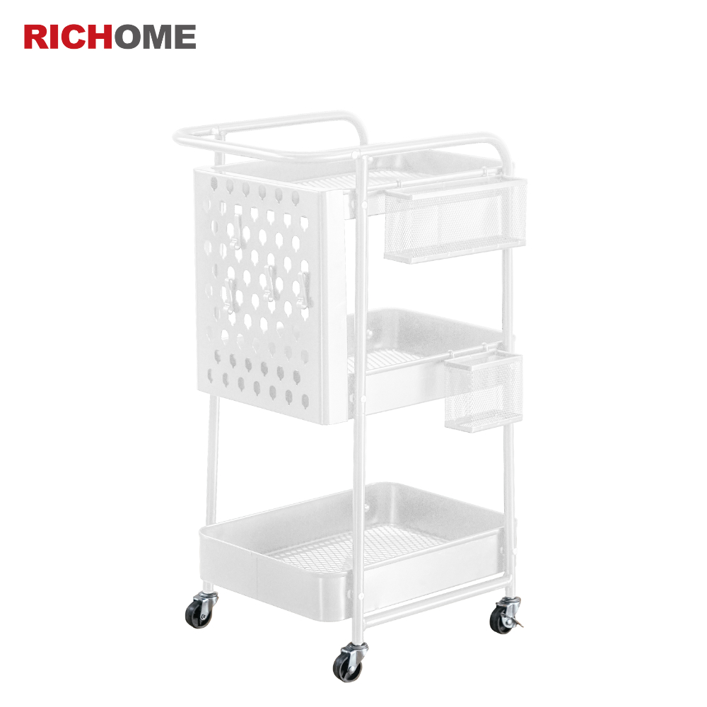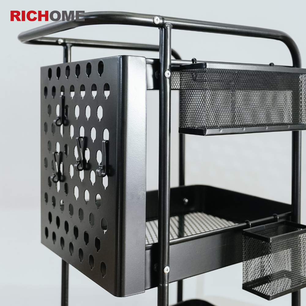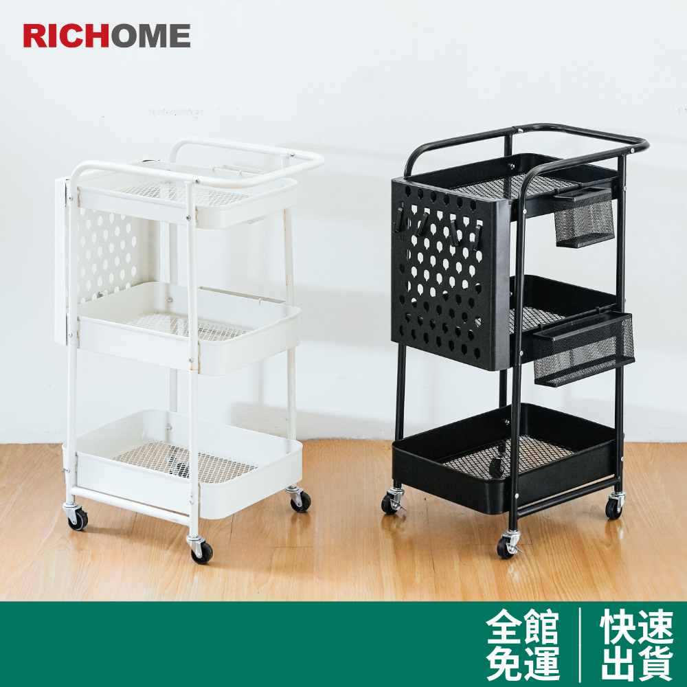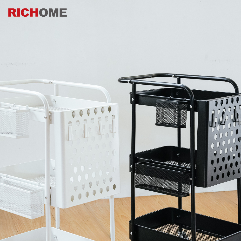 RICHOME 滑輪收納車 鐵製收納車 洞洞板推車 多功能置物推車 三層收納架 移動置物車 工具收納推車 SH617白色|黑色Shelves & RacksRICHOME 生活家居