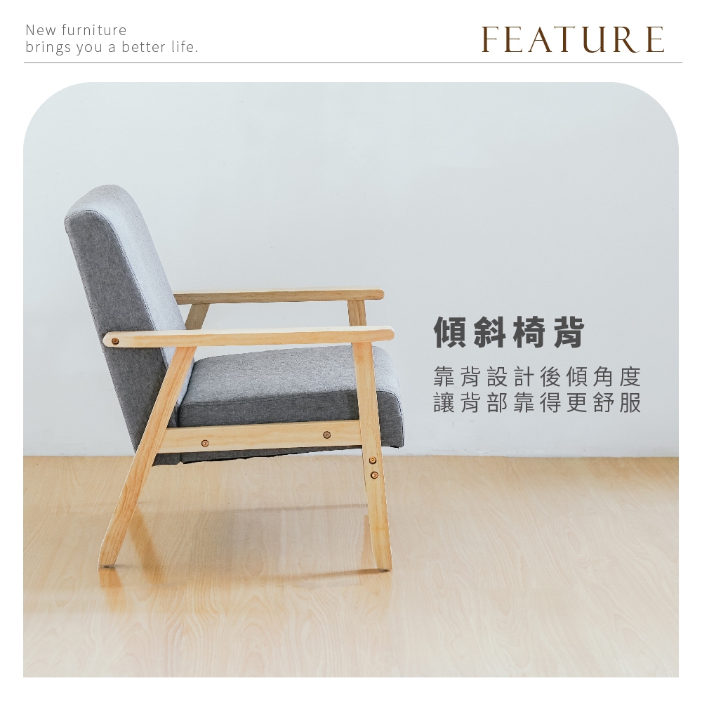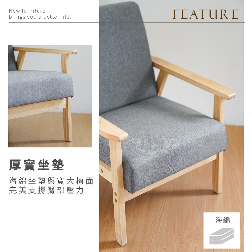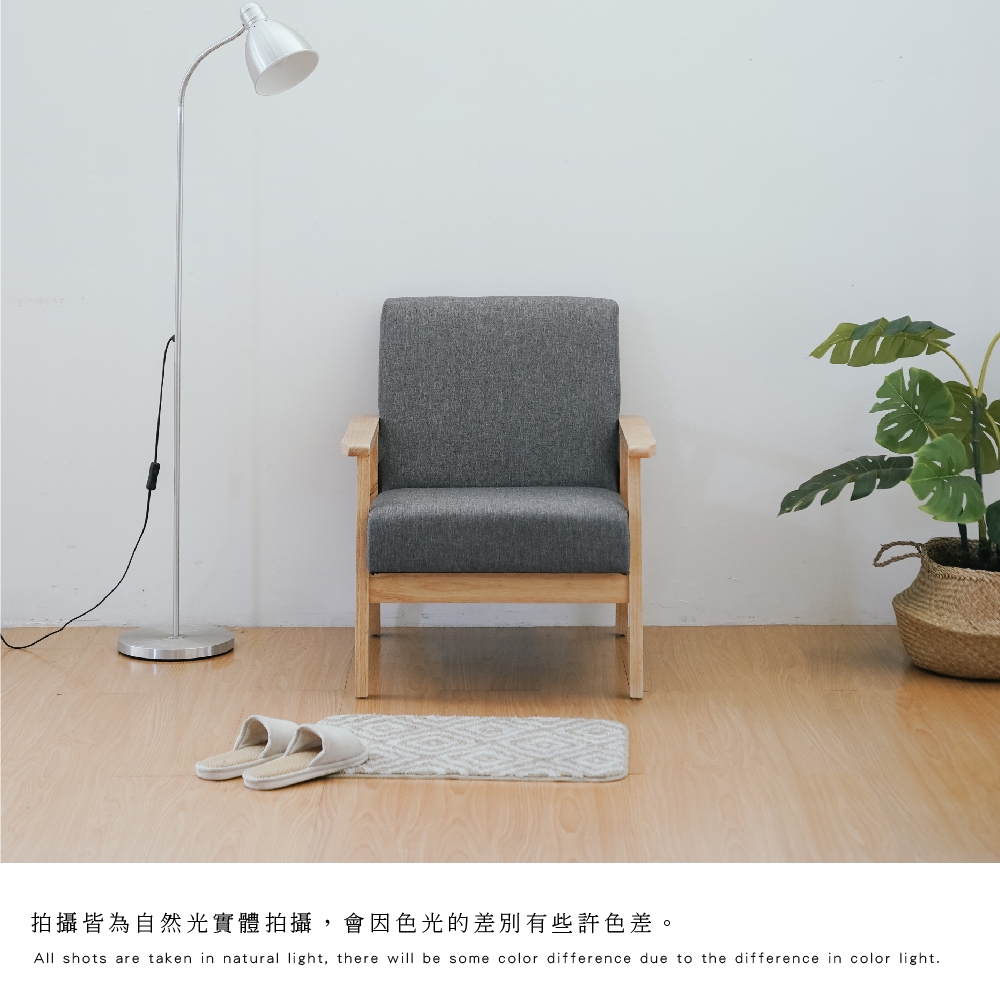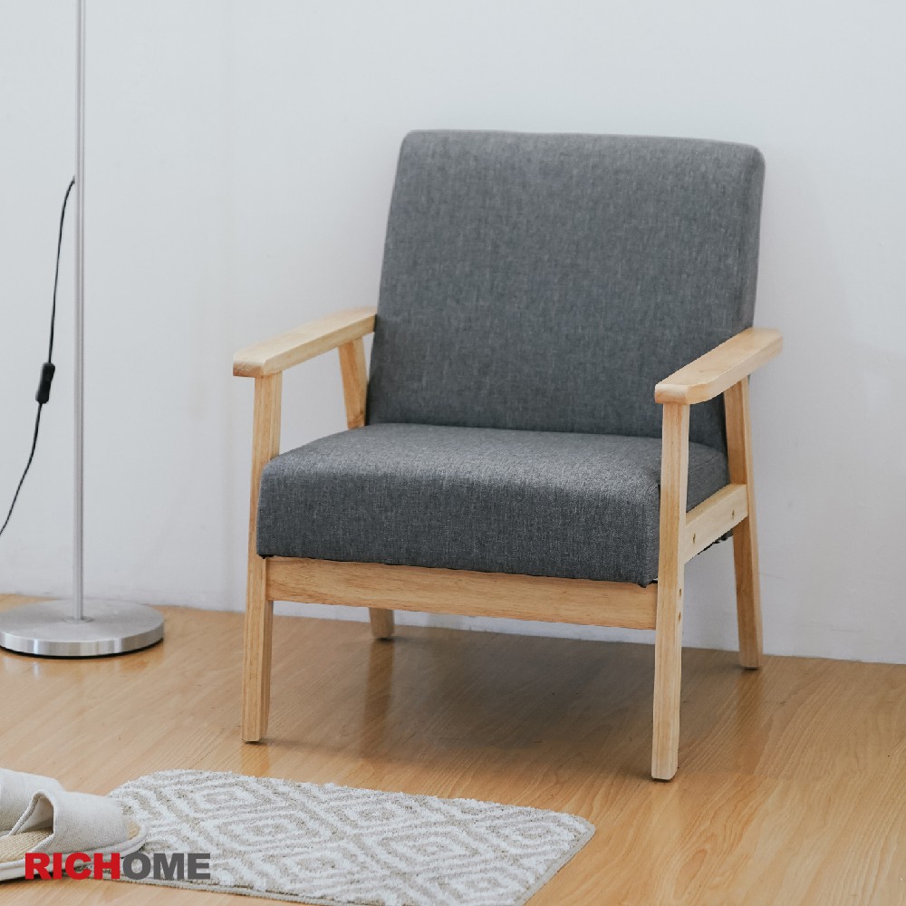 RICHOME 派克單人沙發 沙發 日式沙發 單人沙發 實木沙發 木框沙發 SF087灰色(麻布材質)SofasRICHOME 生活家居