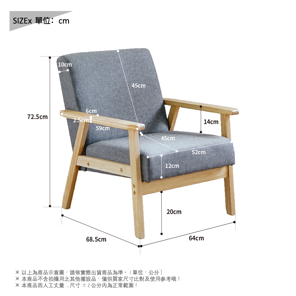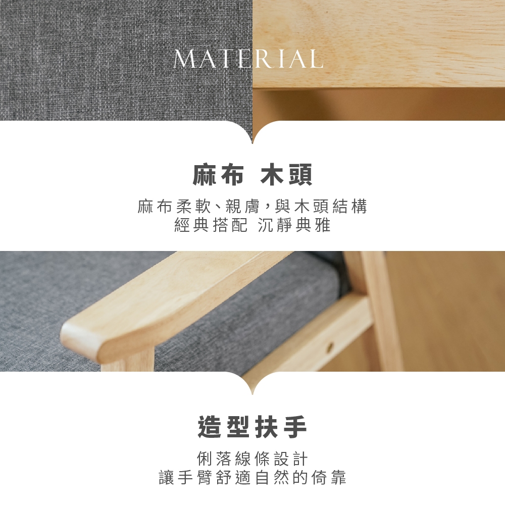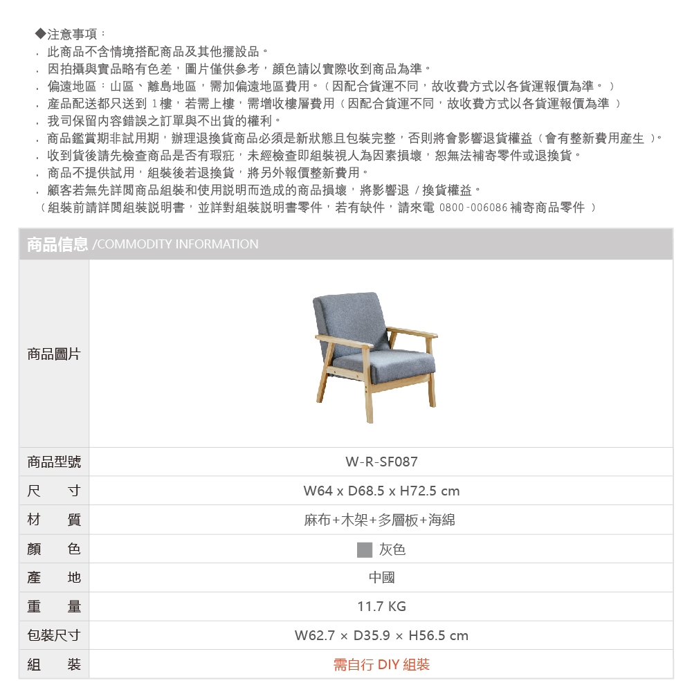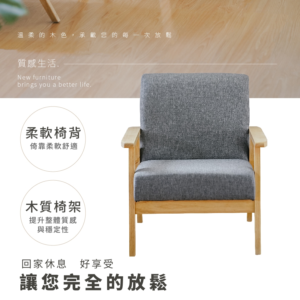 RICHOME 派克單人沙發 沙發 日式沙發 單人沙發 實木沙發 木框沙發 SF087灰色(麻布材質)SofasRICHOME 生活家居